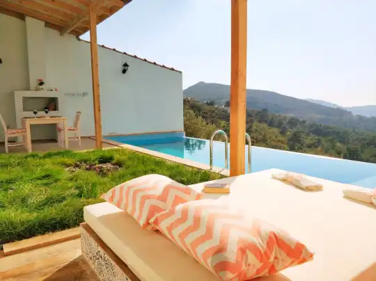Doga Manzarali Muhafazakar Villa Kiralik Villa Viola Kalkan Akbel mevkiinde yeralmakta olup 2 kisi konaklama kapasitesine sahip 1 yatak odali doga manzarali bir balayi villasidir. Muhtesem doga manzarasi ve tasarimiyla balayi çiftleri için özel olarak dizayn edilmistir. Sonsuzluk havuzuna sahip olan havuz terasinda keyifle vakit geçirebilirsiniz. Yatak odasinda bir adet jakuzi bulunan kiralik balayi villamiz huzurlu bir tatil için siz degerli misafirlerini beklemektedir.