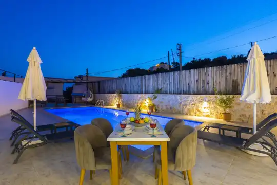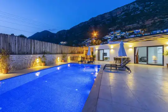 Doga Içinde Muhafazakar Villa Kiralik Villa Cengizhan , Kalkan Kördere mevkiinde yer almakta olup 2 yatak odali 4 kisi kapasitesindedir. Kiralik villamiz doga içerisinde doga manzarali muhafazakar bir seçenek sunmaktadir. Villamizin içerisinde ihtiyaç duyabileceginiz tüm ekimanlar bulunmaktadir. Çekirdek aile ve balayi çiftleri için uygun bir seçenek olan villamiz genis bahçesi ve jakuyzisiyle keyifli dakikalar yasatmak için bbahçede çocuk oyun ve yetiskinler için langirt bulunmkatadir. Muhtesem tatil için siz degerli misafirlerini beklemektedir.