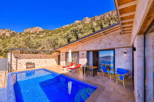 Deniz Manzarali Kiralik Villa Kiralik Villa Alaca , Kalkan Sarniçbasi mevkiinde 2 kisi konaklama kapasitesindedir. Deniz manzarali kiralik villamizin içerisinde kis aylarina uygun kapali havuz bulunmaktadir. Villa içerisinde ihtiyaç duyabileceginiz tüm ekipmanlar yer almakta olup Villa Alaca misafirlerine keyifli tatil firsati sunmaktadir.