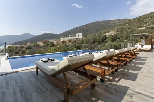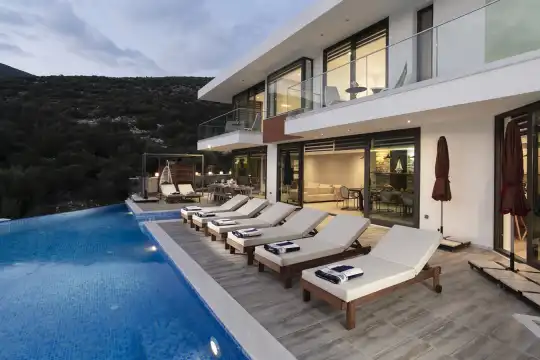 Deniz Manzarali Villa Kiralik Villa Paradise , Kalkan Kalamar mevkiindedir. 4 yatak odali 8 kisiye kadar konaklama imkani sunan villamiz kalabalik aileler ve arkadas gruplari için idealdir. Muhtesem deniz manzarasina hakim olan villamizin içerisinde masa tenisi yer almaktadir. Modern Amerikan mutfaginda ihtiyaç duyabileceginiz tüm ekipmanlar yer almakta olup konforlu mobilyalarla dizayn edilmis salonu hizmetinizdedir.