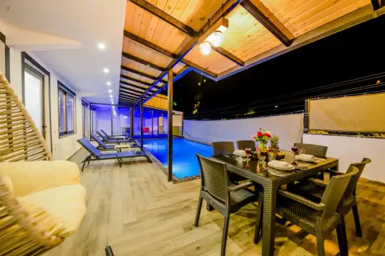 Isitma Havuzlu Kiralik Villa Kiralik Villa Yaz 3 , Kalkan Ulugöl mevkiinde 2 yatak odali 4 kisi konaklama kapasitesine sahiptir. Doga içerisinde bulunan kiralik villamiz etrafi korunakli muhafazakar villa seçeneklerimiz arasinda bulunmaktadir. Kis aylari için uygun olan villamiz da kapali isitma havuzu bulunmaktadir. Villa içerisinde ihtiyaç duyabileceginiz tüm ekipmanlar bulunmakta olan villamiz misafirlerini agirlamayi beklemektedir.