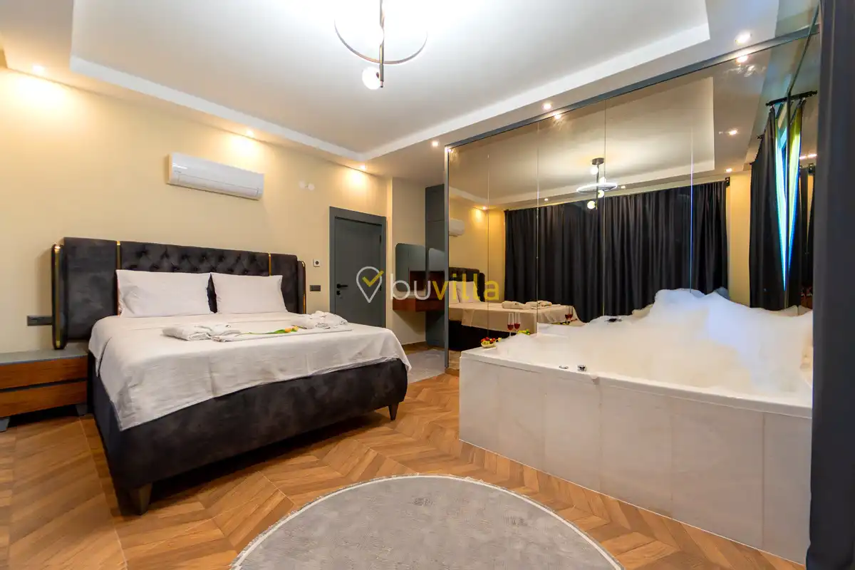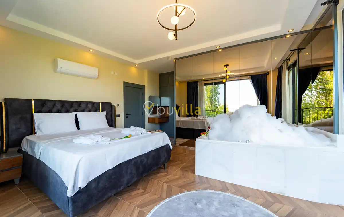 Villada bulunan çift jakuzi, sauna ve Türk hamamı, tatiliniz boyunca dinlenmenizi ve yenilenmenizi sağlayacak lüks olanaklar arasında yer almaktadır. Modern ve şık mimarisiyle dikkat çeken Villa Akbulut 4, konforlu ve keyifli bir villa tatili için özenle tasarlanmıştır.