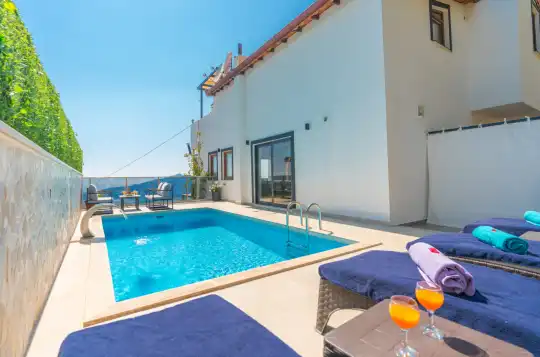 Villa Alkım Bade’nin öne çıkan özelliklerinden biri, size özel kullanım sunan yüzme havuzudur. Havuz terasında yer alan güneşlenme alanları, oturma köşeleri ve manzara eşliğinde dinlenebileceğiniz alanlar sayesinde gün boyunca keyifli vakit geçirebilirsiniz. Doğa ve denizin buluştuğu bu özel atmosfer, özellikle gün batımında unutulmaz anlar yaşamanıza olanak tanır.
