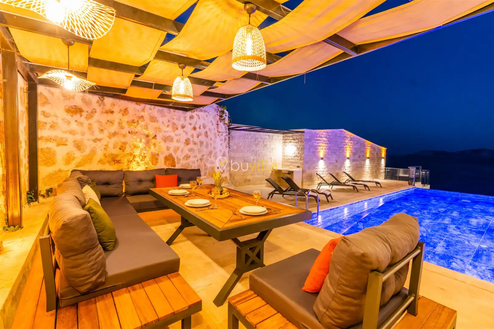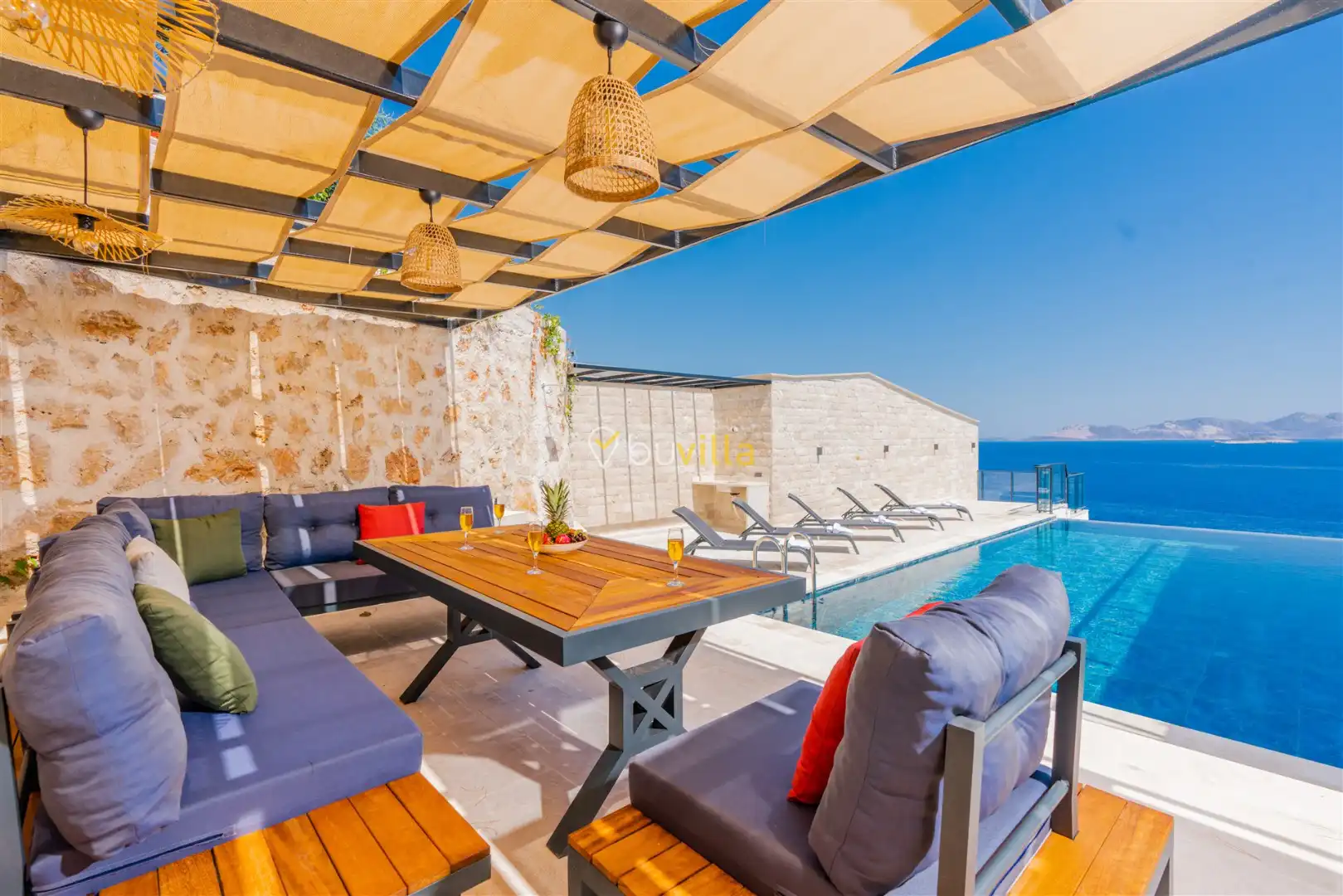 Kaş ile Kalkan arasında uzanan sahil yolu üzerinde konumlanan Villa Altay, denize oldukça yakın konumu ve eşsiz Akdeniz manzarasıyla öne çıkan özel bir tatil villasıdır. 4 yatak odası ve 8 kişi konaklama kapasitesine sahip olan villamız, geniş aileler ve arkadaş grupları için ferah ve konforlu bir konaklama imkânı sunmaktadır.