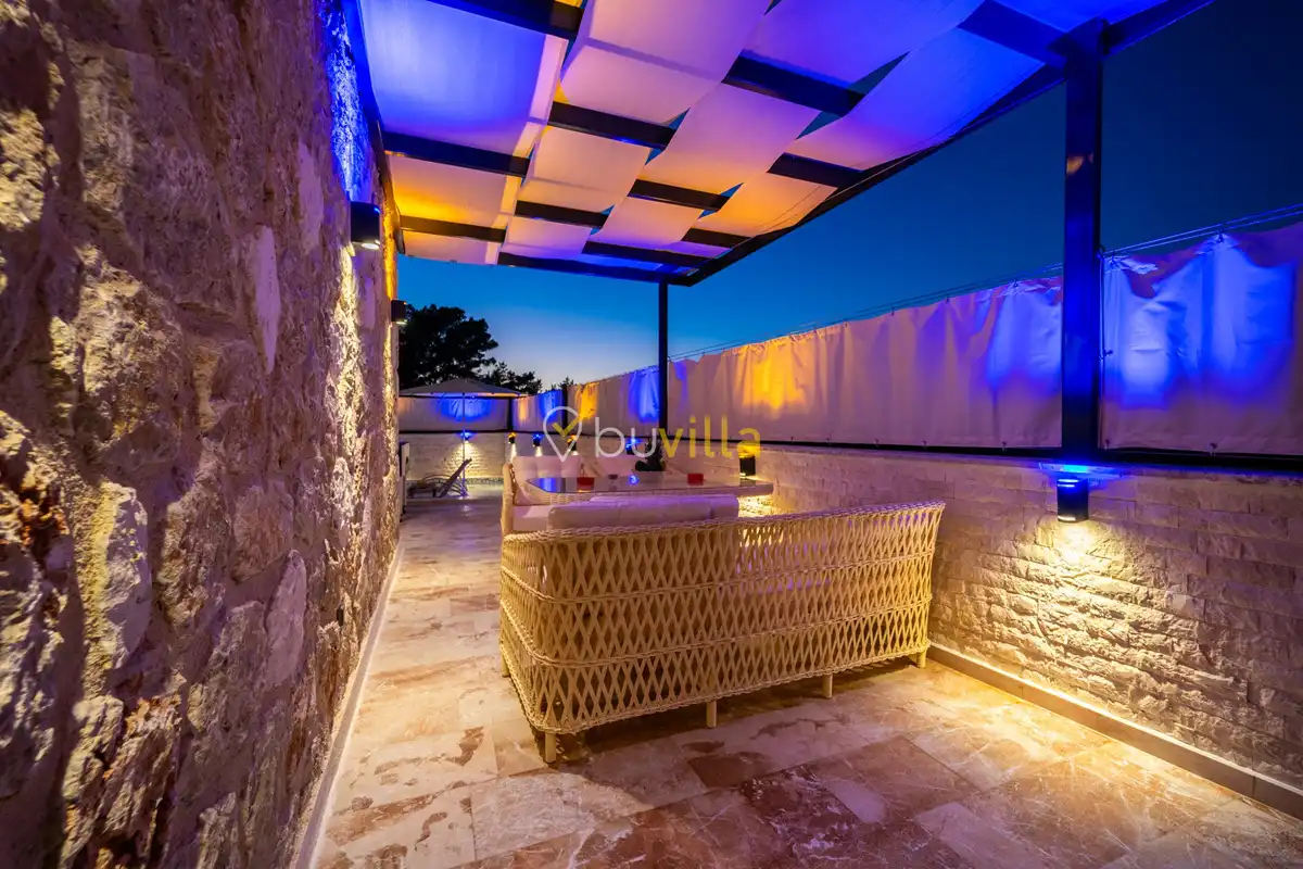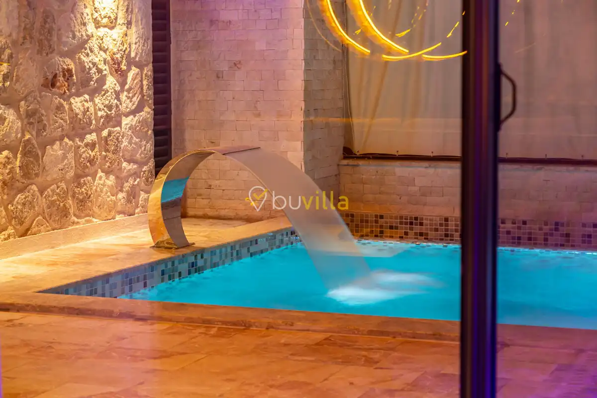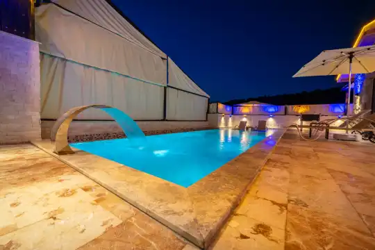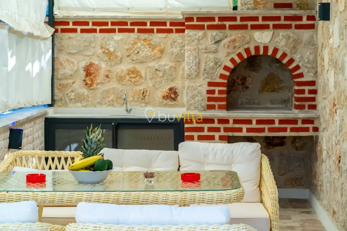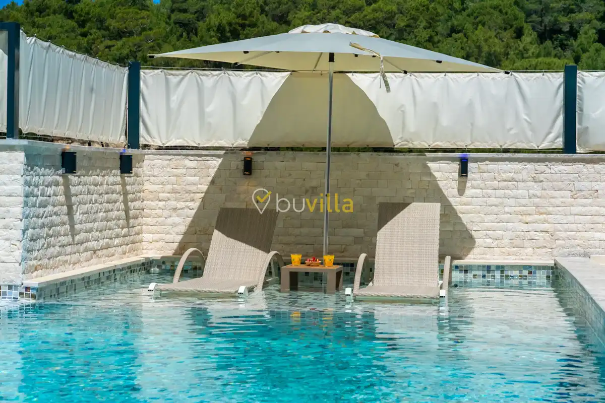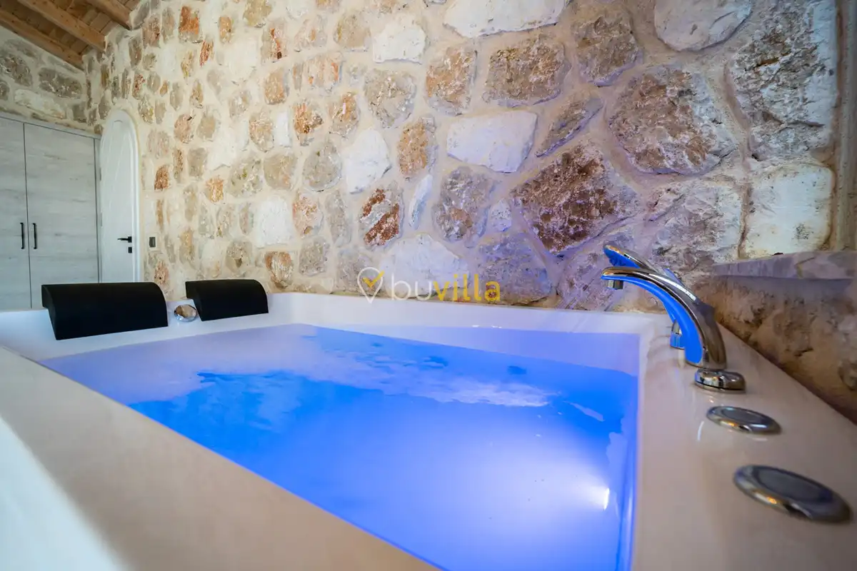 Villa Anemon 1, Kalkan’ın Akbel mevkiinde konumlanan, 2 yatak odalı ve 4 kişilik konaklama kapasitesine sahip özel bir kiralık villadır. Doğa ile uyumlu taş ve ahşap mimarisi sayesinde sıcak ve huzurlu bir atmosfer sunan villamız, sakin bir tatil arayan misafirler için ideal bir seçenektir. Villanın özel havuz terası, misafirlerin rahat ve keyifli vakit geçirebileceği şekilde tasarlanmış olup mahremiyet ön planda tutulmuştur. Ebeveyn yatak odasında yer alan çift kişilik jakuzi, tatilinize konfor ve ayrıcalık katarken dinlenmenizi üst seviyeye taşır.