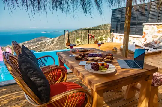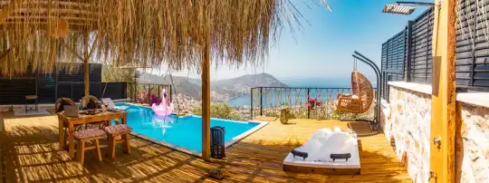 Balayi Villasi Kiralik Villa Angel House , Kalkan Akbel mevkiinde yer almakta olup tiny house seklinde tasarlanmis balayi villasidir. Korunakli villamiz merkezi konumda yer almakta olup deniz manzarasina hakimdir. Villamizin mutfaginda ihtiyaç duyabileceginiz ekipmanlar mevcuttur.