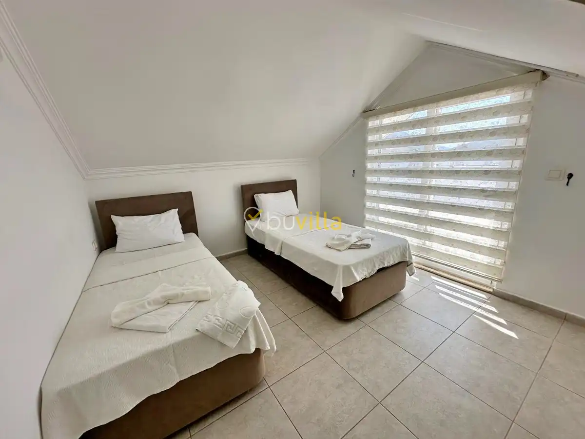 Villamızda buzdolabı, fırın, ekmek kızartma makinesi, çamaşır ve bulaşık makinesi gibi temel beyaz eşyaların yanı sıra güvenli kasa ve sineklikler de bulunmaktadır. İki adet çift kişilik yatak ve dört adet tek kişilik yatak ile toplamda sekiz kişiye kadar konaklama kapasitesine sahiptir. Hisarönü bölgesinde yer alan villa, ünlü Hisarönü barlar sokağına yürüme mesafesindedir.