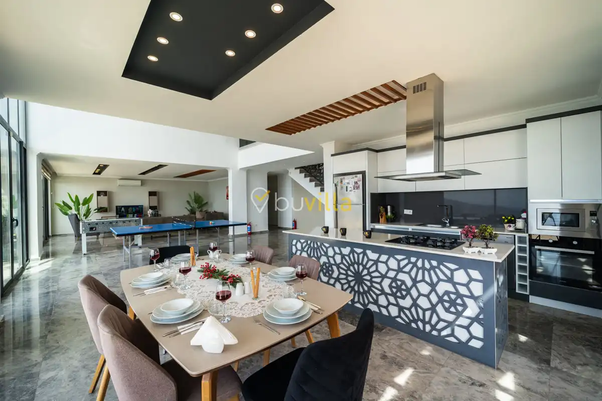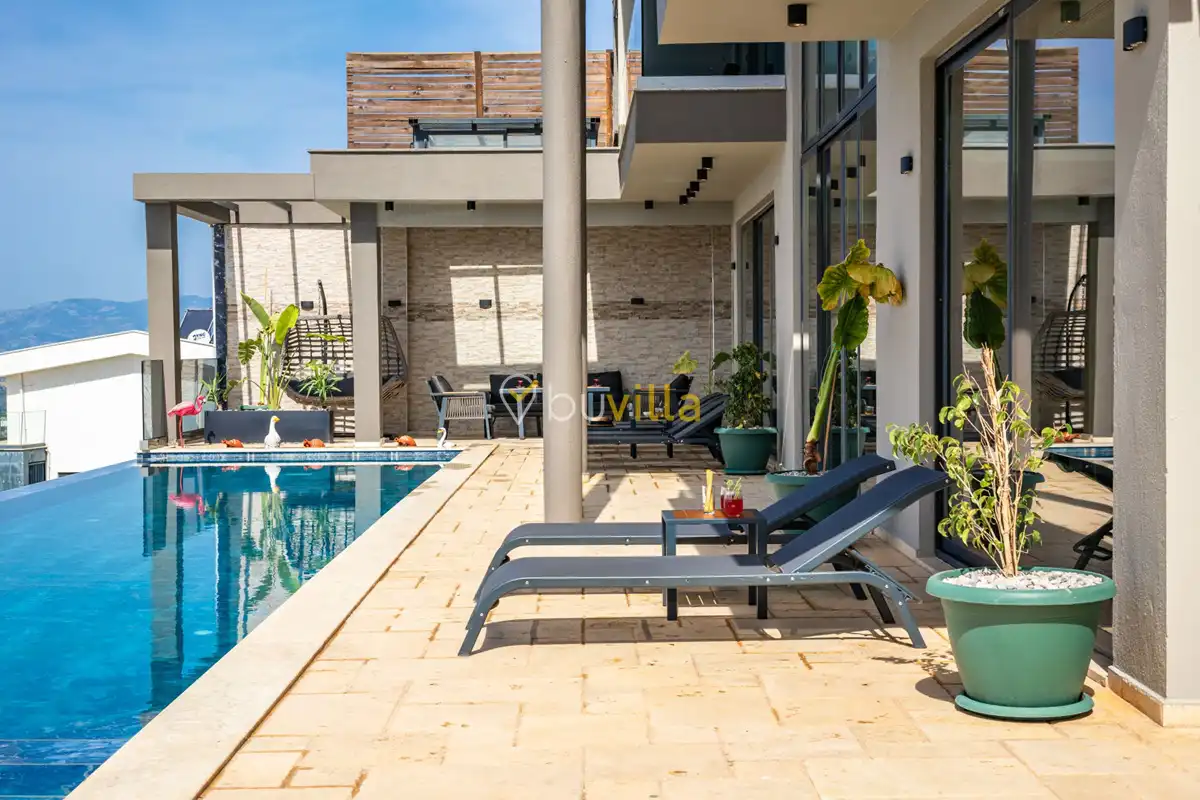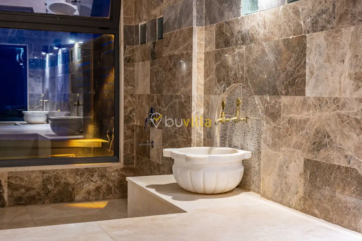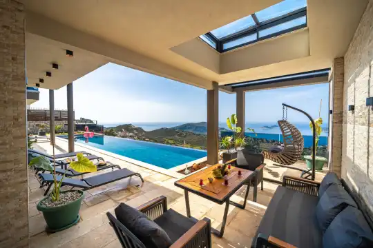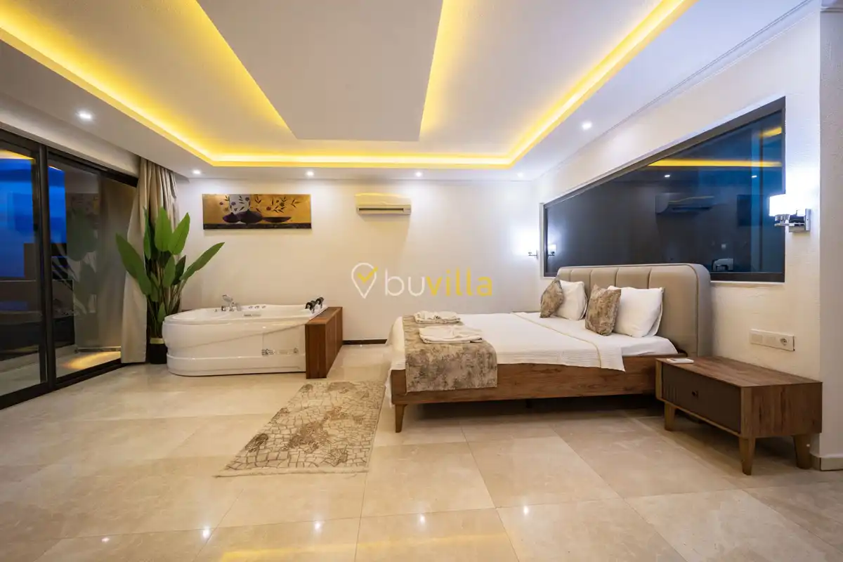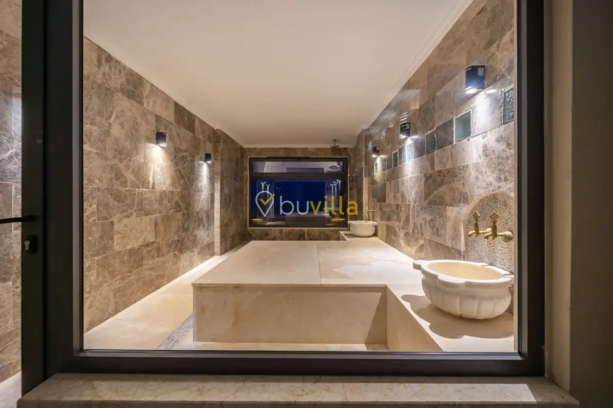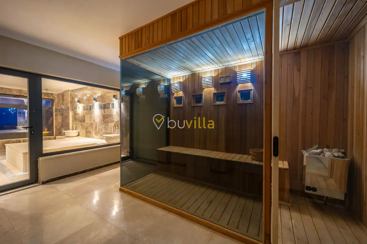 Villada yer alan sonsuzluk havuzu, hamam, sauna ve jakuzi, günün tüm yorgunluğunu geride bırakmanız için ideal bir ortam oluşturur. Havuz terasının kısmi korunaklı yapısı sayesinde, daha izole bir alan arayan aileler için de tercih edilebilir bir konaklama seçeneğidir.
