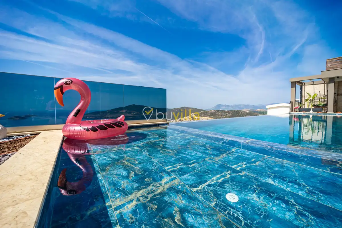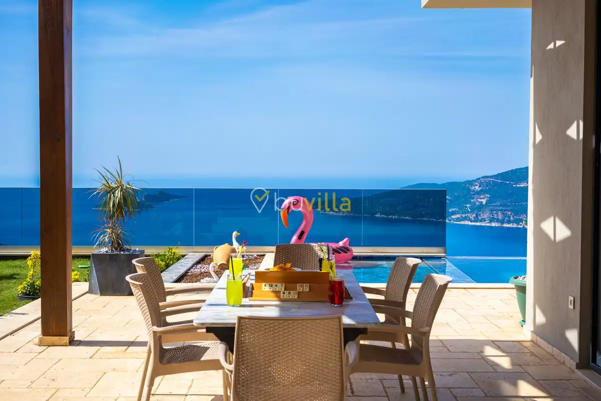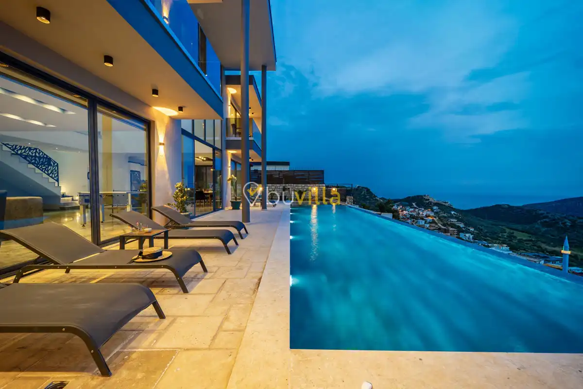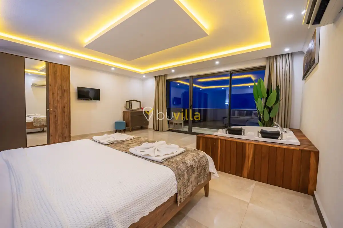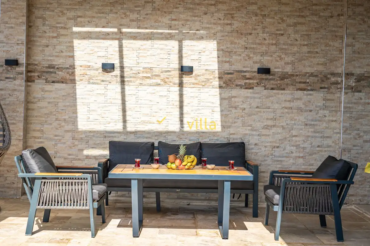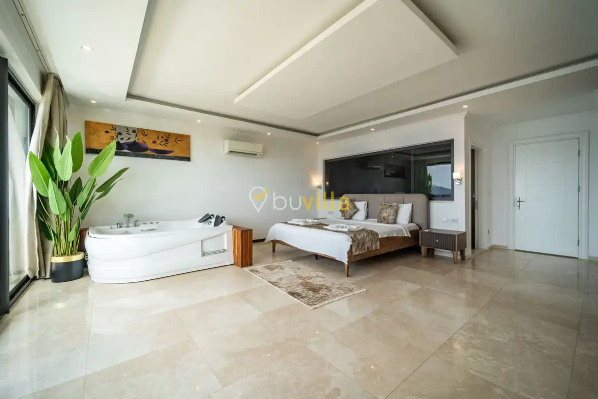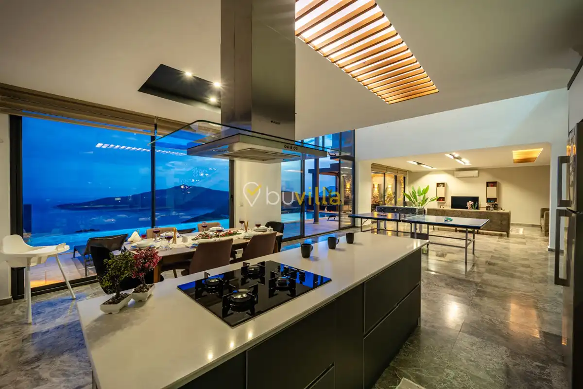 Villada yer alan sonsuzluk havuzu, hamam, sauna ve jakuzi, günün tüm yorgunluğunu geride bırakmanız için ideal bir ortam oluşturur. Havuz terasının kısmi korunaklı yapısı sayesinde, daha izole bir alan arayan aileler için de tercih edilebilir bir konaklama seçeneğidir.