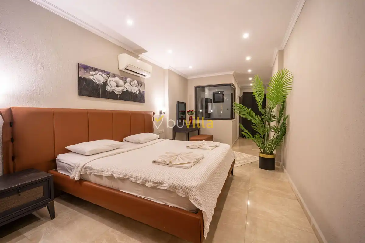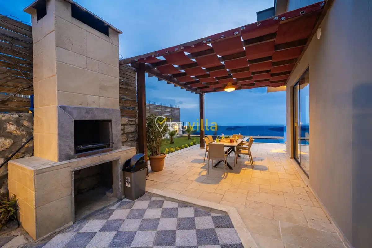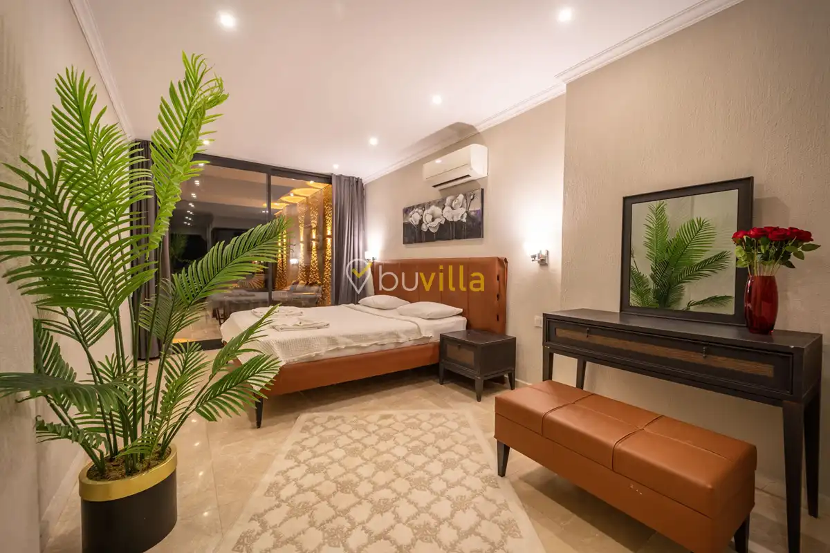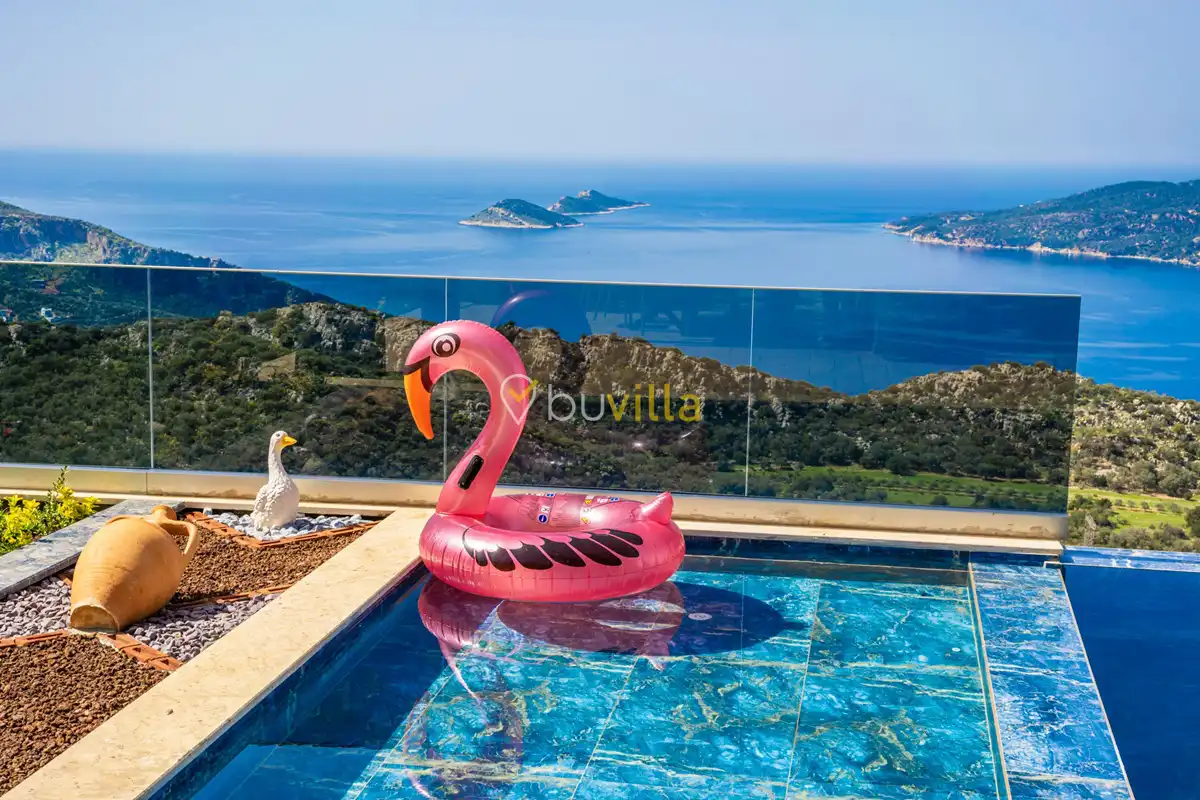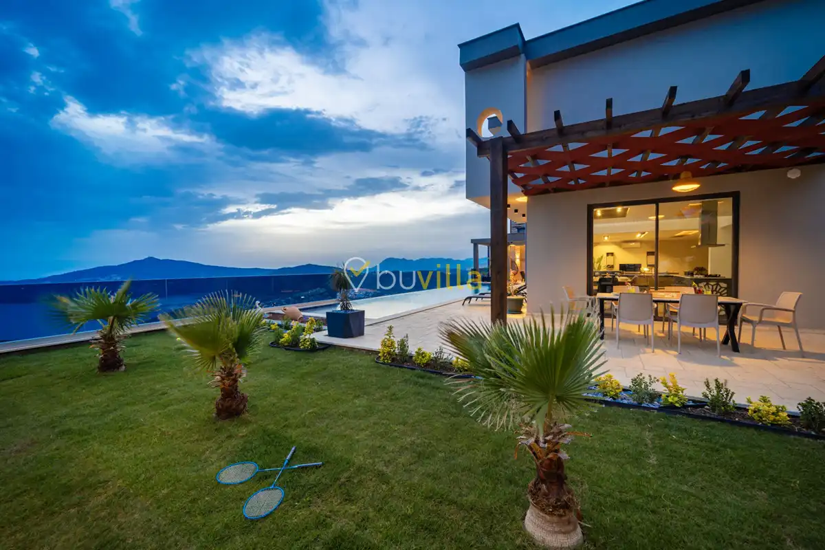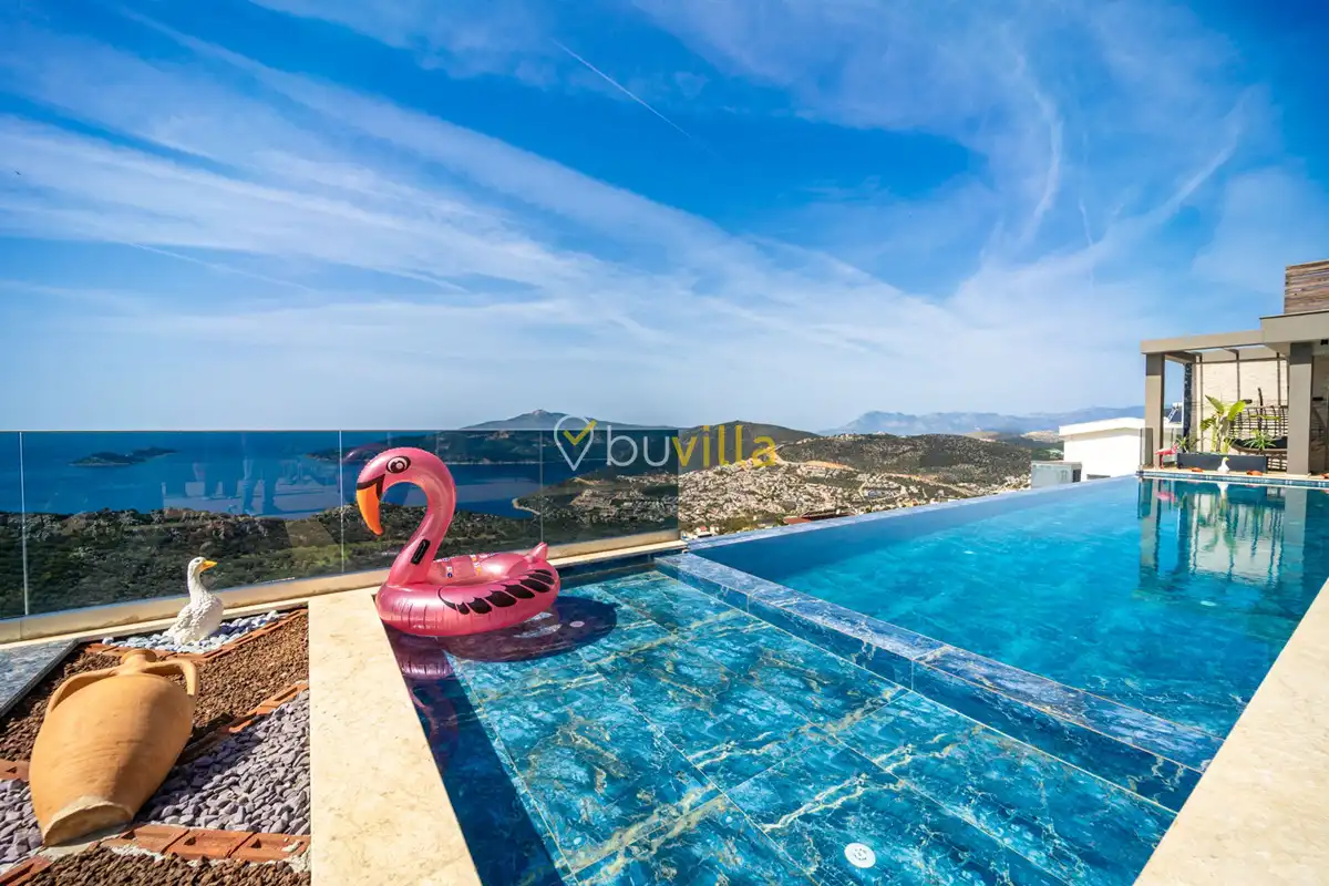 Villada yer alan sonsuzluk havuzu, hamam, sauna ve jakuzi, günün tüm yorgunluğunu geride bırakmanız için ideal bir ortam oluşturur. Havuz terasının kısmi korunaklı yapısı sayesinde, daha izole bir alan arayan aileler için de tercih edilebilir bir konaklama seçeneğidir.