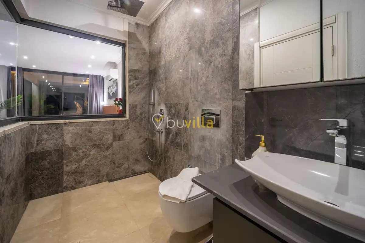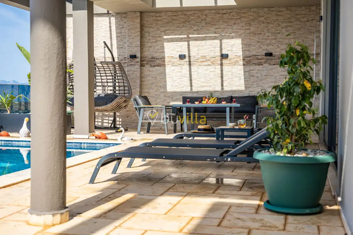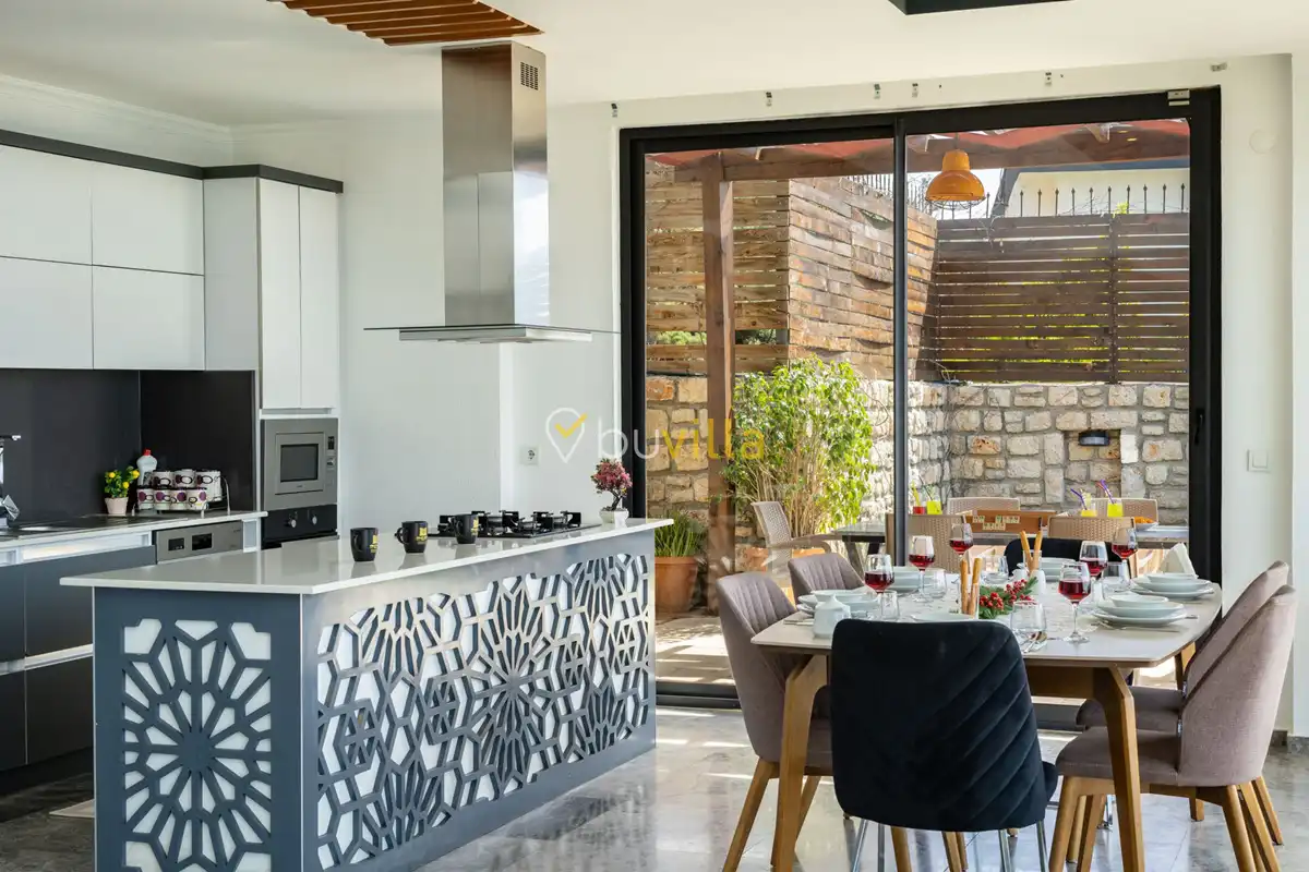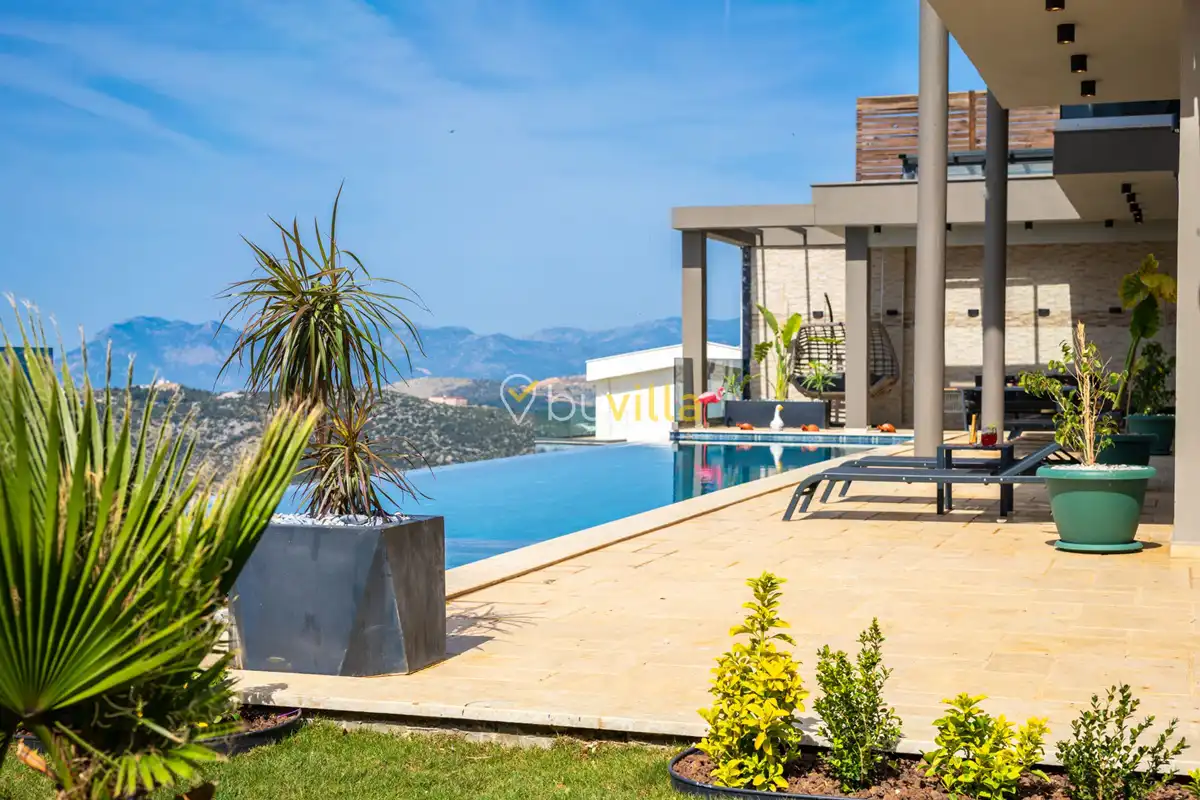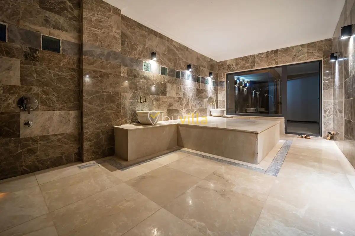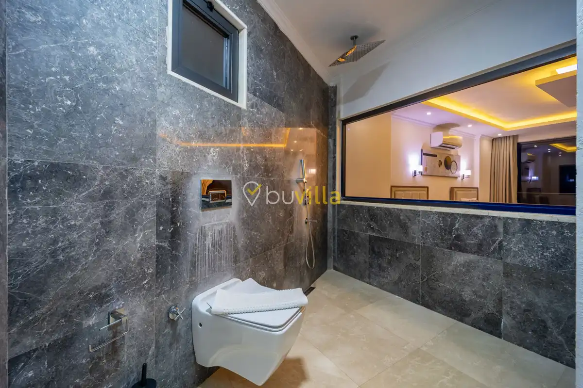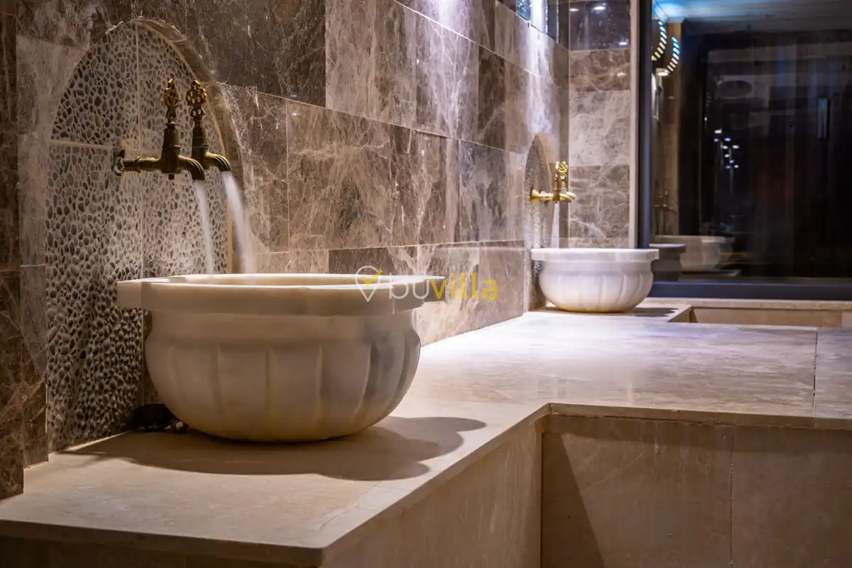 Villada yer alan sonsuzluk havuzu, hamam, sauna ve jakuzi, günün tüm yorgunluğunu geride bırakmanız için ideal bir ortam oluşturur. Havuz terasının kısmi korunaklı yapısı sayesinde, daha izole bir alan arayan aileler için de tercih edilebilir bir konaklama seçeneğidir.