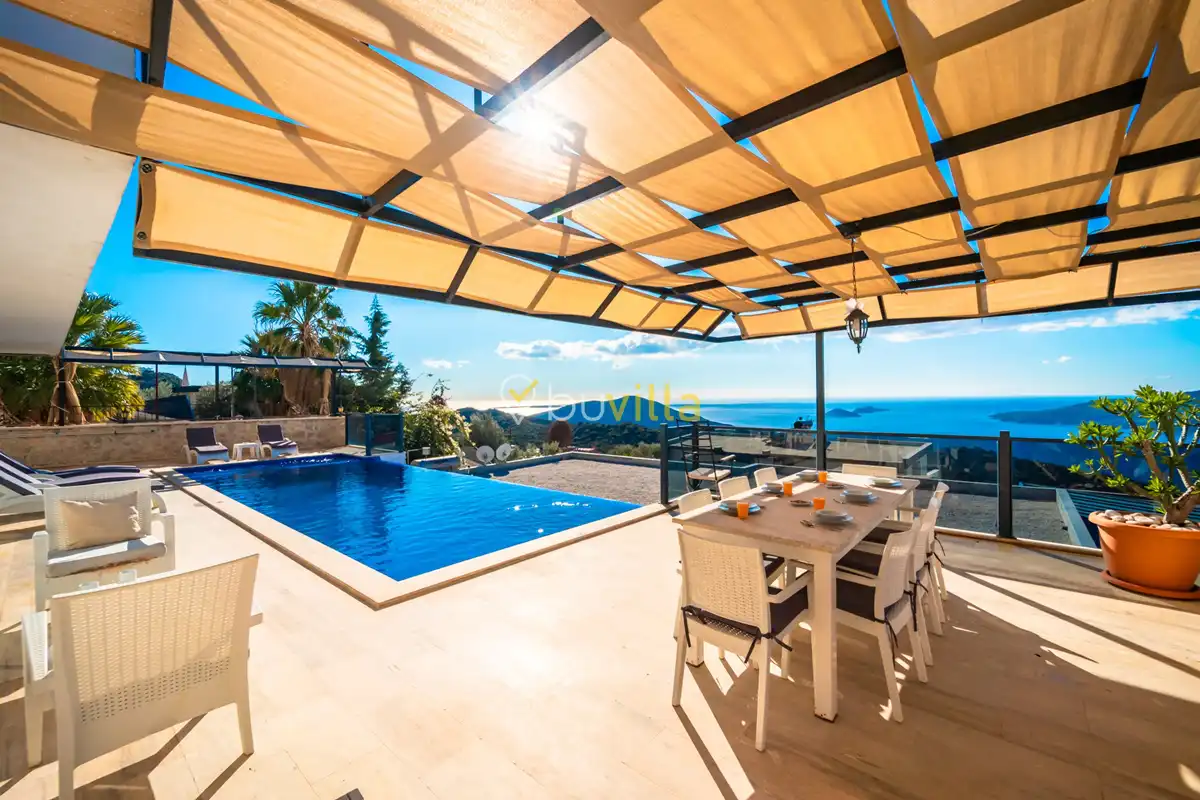 Kördere bölgesinde konumlanan Villa April, 4 yatak odası ve 8 kişilik konaklama kapasitesi ile kalabalık aileler ve arkadaş grupları için ideal bir kiralık villa seçeneğidir. Panoramik deniz ve Kalkan manzarasına hâkim olan villamız, aynı zamanda doğa manzarasıyla da huzurlu bir tatil atmosferi sunar.