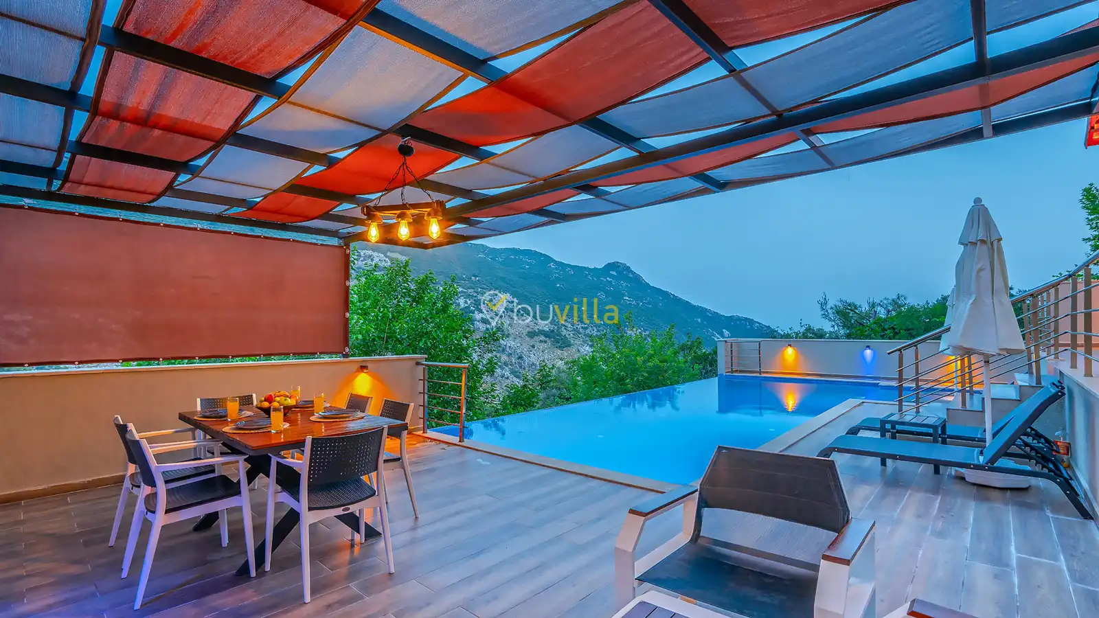 Kalkan’ın doğa ile iç içe yapısıyla öne çıkan İslamlar bölgesinde konumlanan Villa Aras İslamlar, balayı çiftleri ve küçük aileler için özel olarak tasarlanmış, huzurlu ve konforlu bir tatil villasıdır.