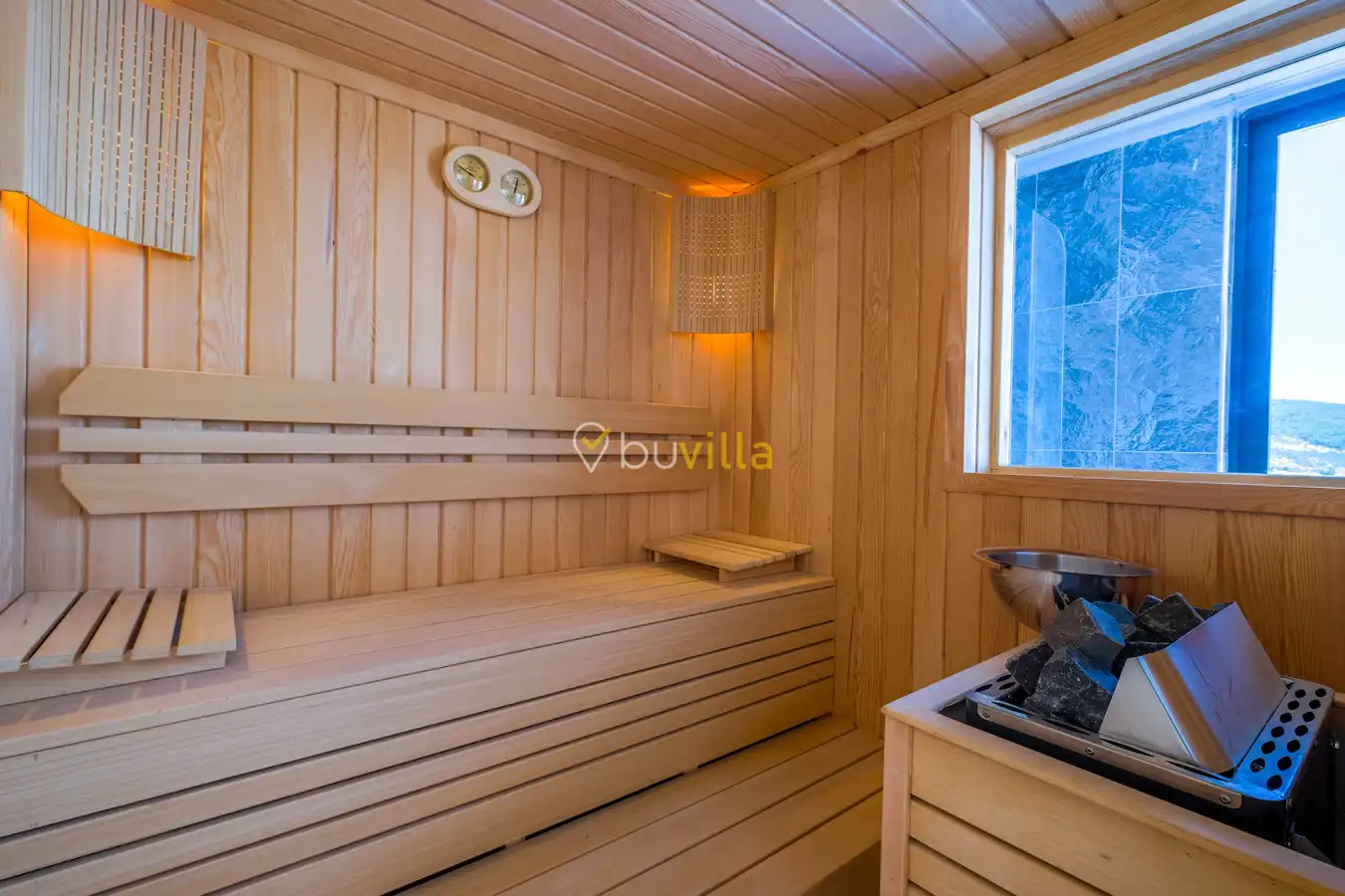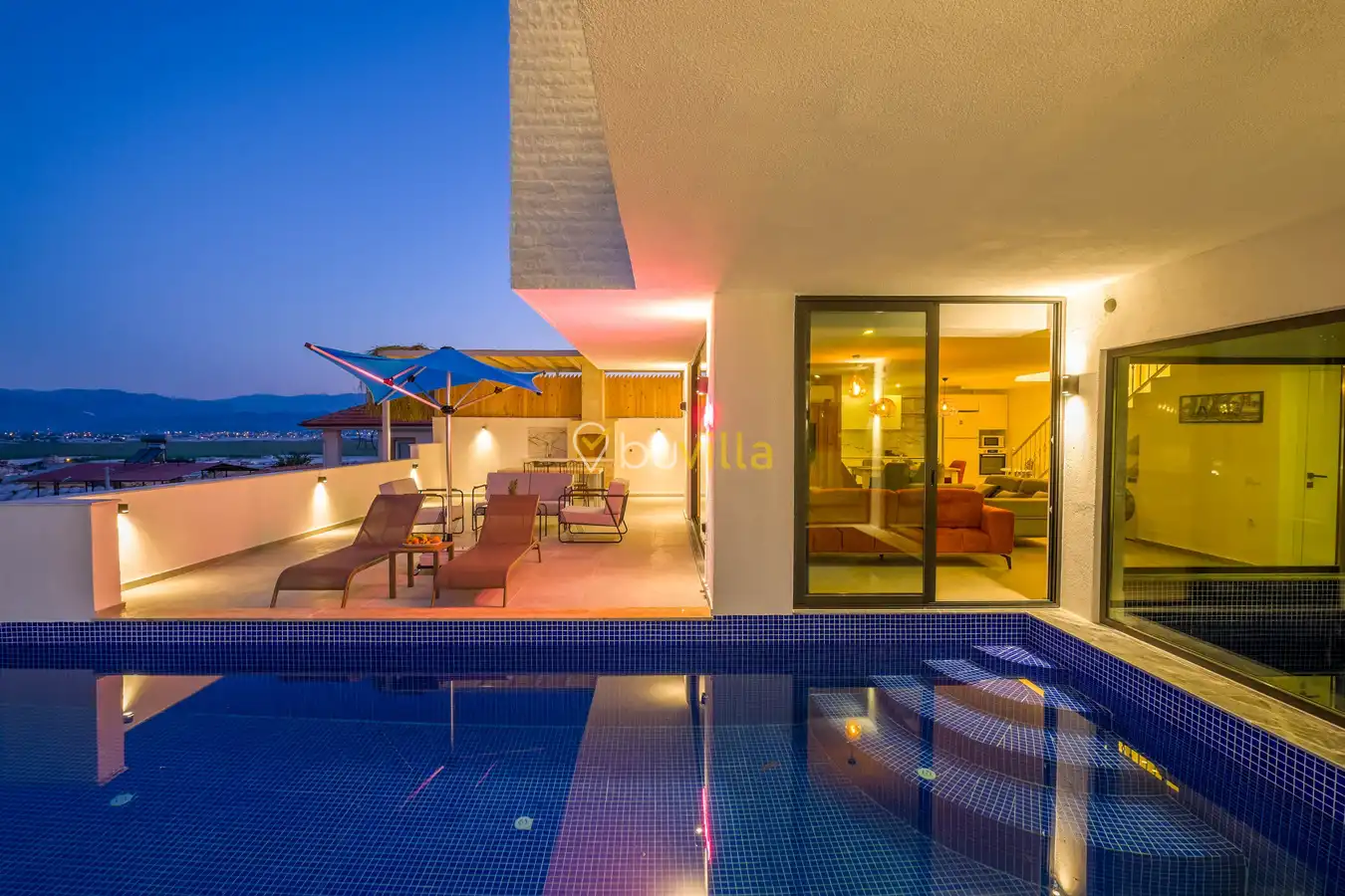 Modernizm ve minimalizmin harmanlandığı iç tasarımıyla dikkat çeken Villa Ari, kullanılan doğal tonlar ve kaliteli malzemeler sayesinde sıcak ve şık bir ambiyans sunar. Villamızın lüks konseptinde kapalı havuz, sauna ve jakuzi gibi ayrıcalıklı özellikler bulunurken, açık alanda özel yüzme havuzu, çocuk oyun alanı (salıncak, tahterevalli, kaydırak) ve yetişkinler için etkinlik alanı (masa tenisi, hamak, salıncak) yer almaktadır.