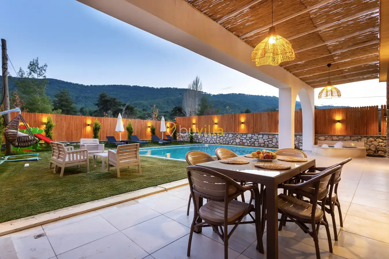 2 yatak odası ve 4 kişilik konaklama kapasitesi ile balayı çiftleri ve çekirdek aileler için ideal bir seçenek sunan Villa Ark, geniş bahçesi ve sunduğu olanaklarla her yaştan misafire hitap eder. Havuz terasında yer alan jakuzi, yıldızlar altında rahatlamak ve doğanın eşsiz atmosferinde huzuru hissetmek için mükemmel bir alan yaratır.