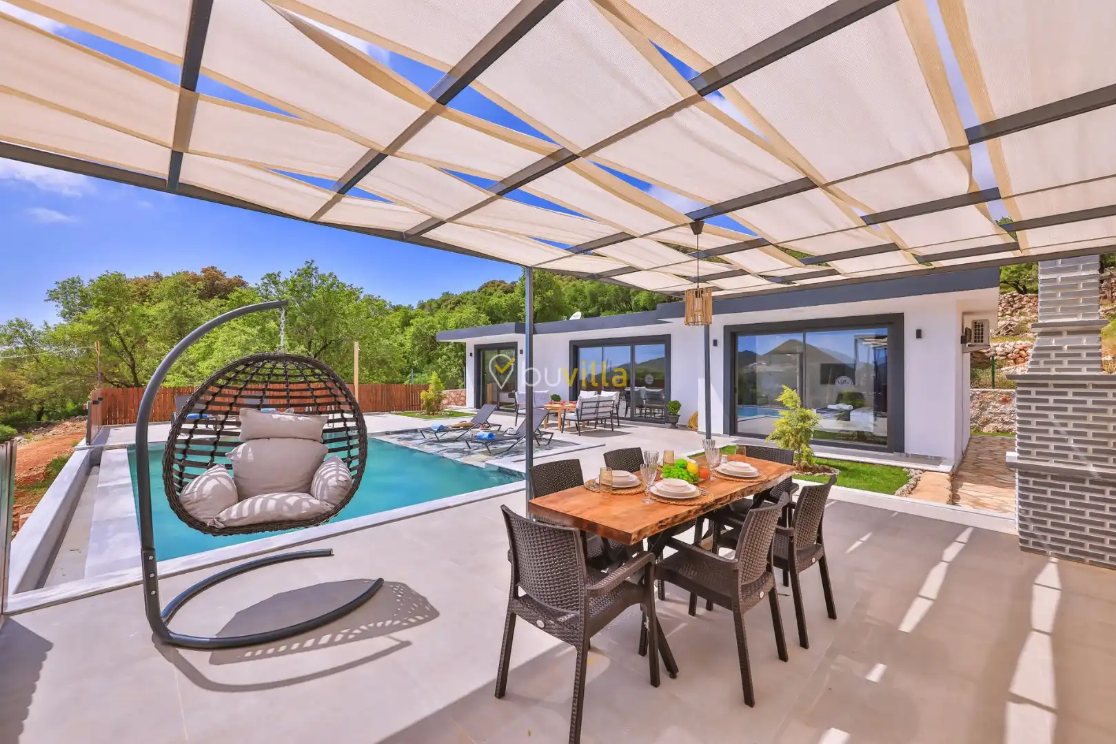 Doğa ile iç içe konumu sayesinde sakin ve huzurlu bir atmosfer sunan villamız, konforlu bir tatil deneyimi yaşamak isteyen misafirler için ideal bir seçenektir. Bahçesinde yer alan yeşil oturma alanı ve geniş havuz terası, sevdiklerinizle birlikte keyifli vakit geçirmeniz için tasarlanmıştır.