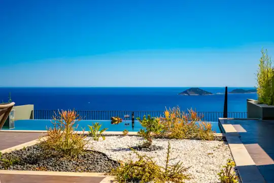 Kalkan Kalamar bölgesinde, doğa ve deniz manzarasına sahip bir konumda yer alan Villa Aura D, konforlu yapısı ve modern tasarımıyla dikkat çeken bir tatil villasıdır. Üç yatak odalı ve 6 kişilik konaklama kapasitesine sahip olan villamız, daha büyük gruplar için kardeş villası Villa Aura C ile birlikte 12 kişiye kadar konaklama imkanı sunmaktadır.