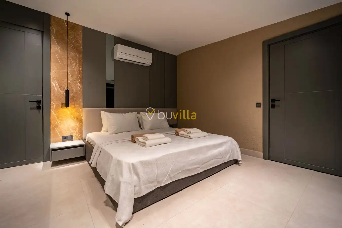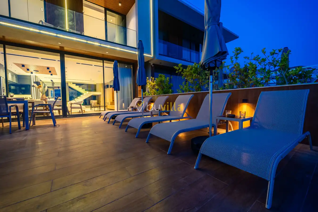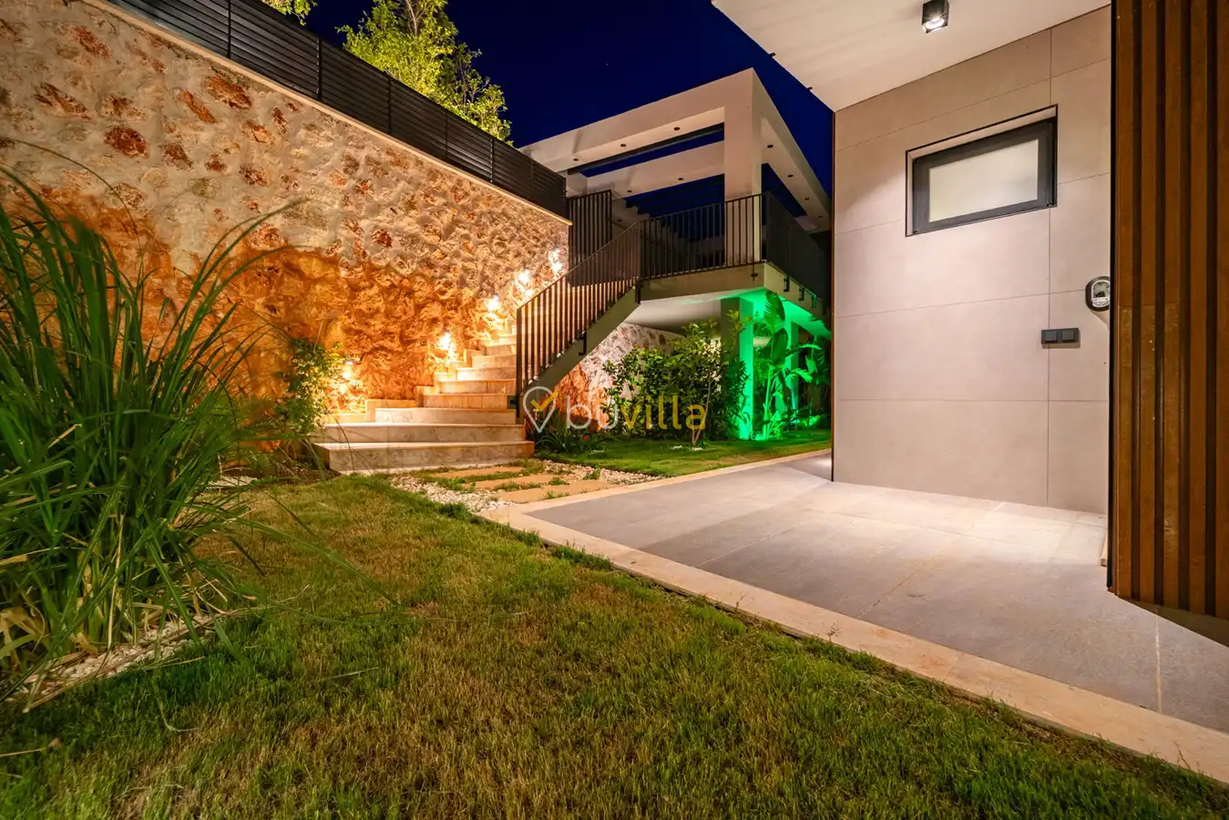 Geniş bahçesi ve havuz terası, misafirlerine huzurlu ve keyifli bir tatil ortamı sunarken; oturma grubu, şezlonglar, güneş şemsiyesi ve salıncak gibi olanaklarla donatılmıştır. Ayrıca, villamız özel otoparka sahiptir ve yerel marketlere yürüme mesafesinde bulunmasıyla avantaj sağlamaktadır.