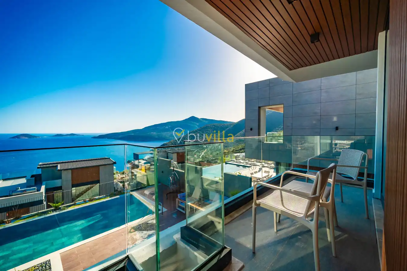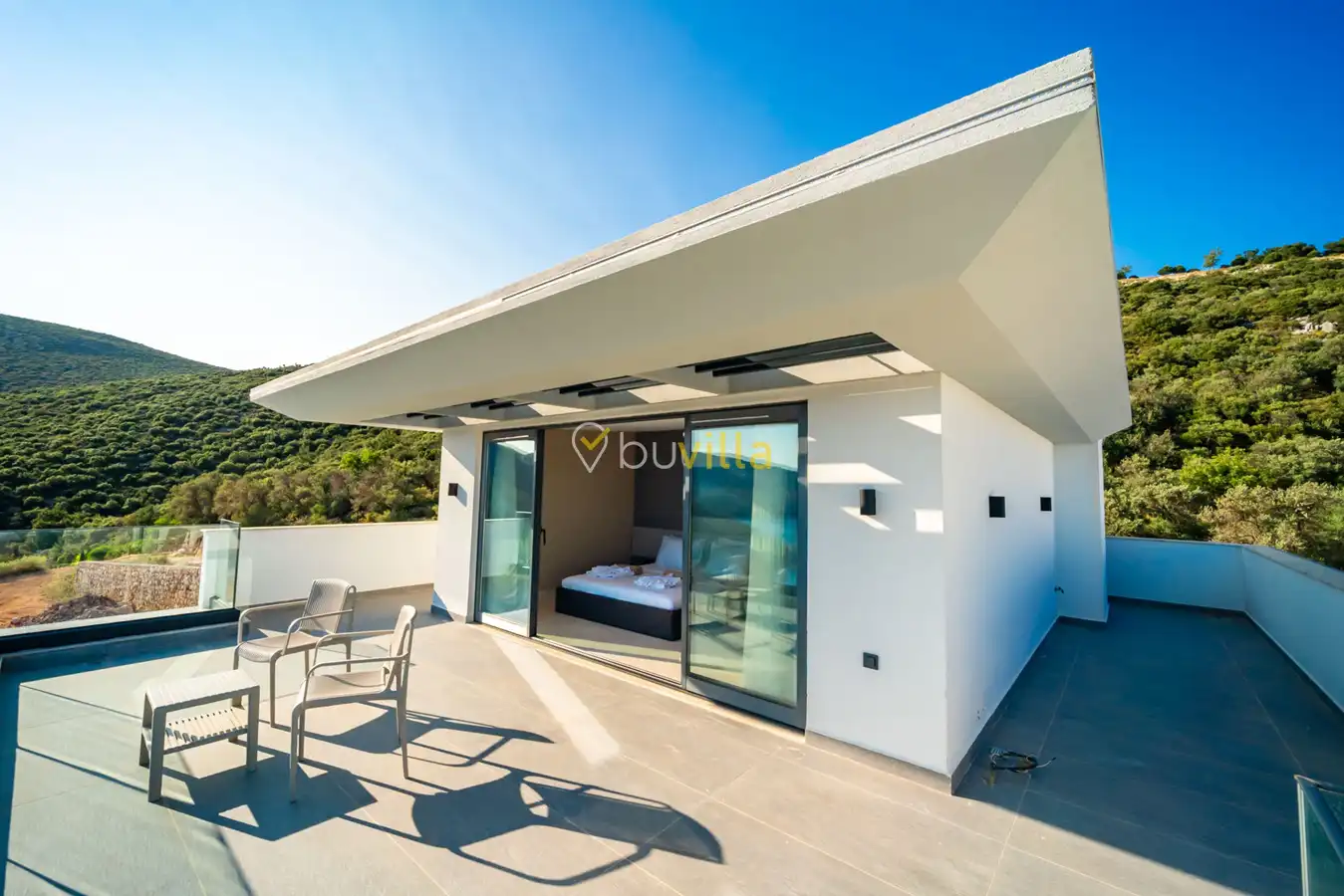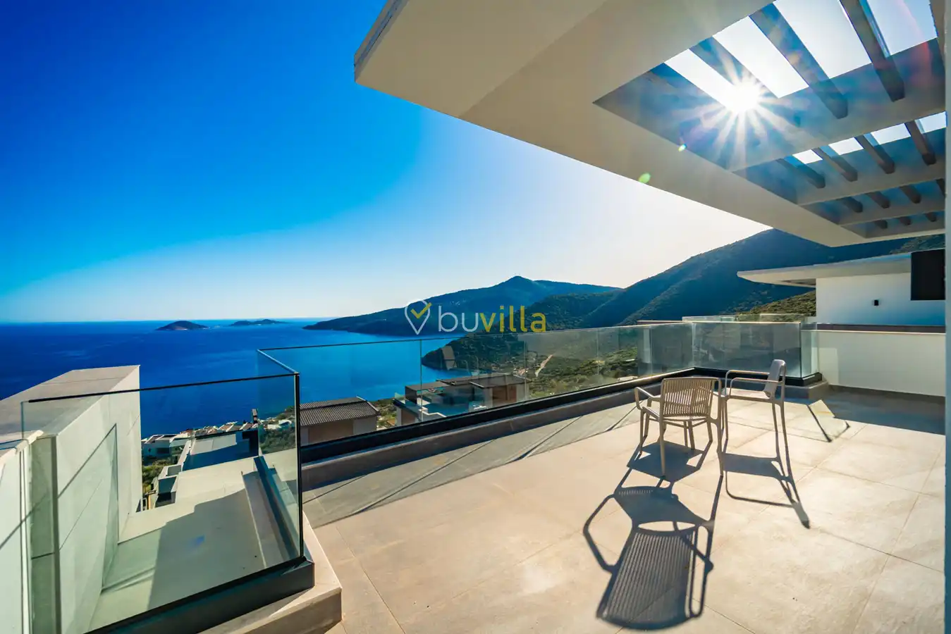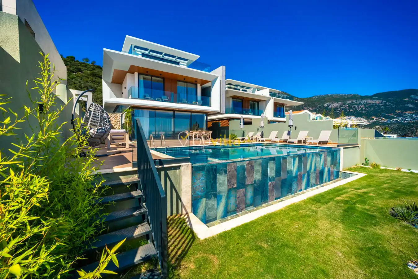 Kalkan Kalamar bölgesinde, doğa ve deniz manzarasına sahip bir konumda yer alan Villa Aura E, konforlu yapısı ve modern tasarımıyla dikkat çeken bir tatil villasıdır. Üç yatak odalı ve 6 kişilik konaklama kapasitesine sahip olan villamız, daha büyük gruplar için kardeş villaları Villa Aura C ve Villa Aura D ile birlikte 18 kişiye kadar konaklama imkanı sunmaktadır.