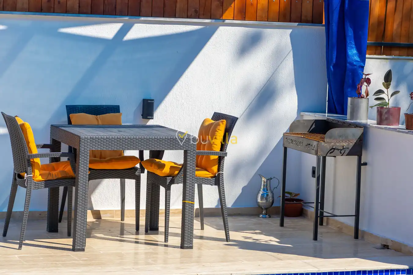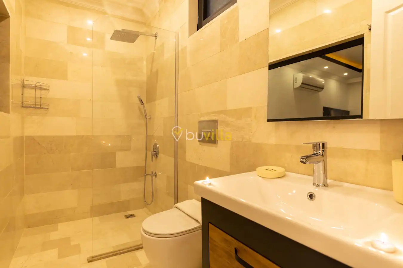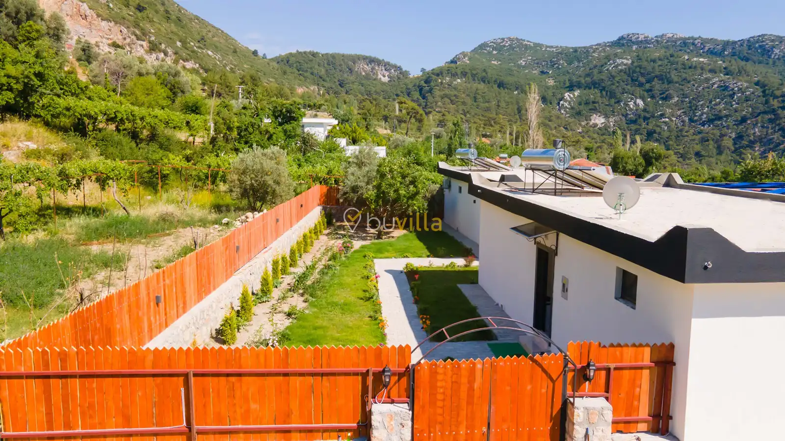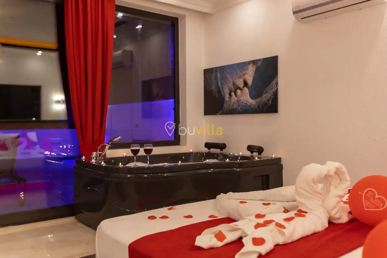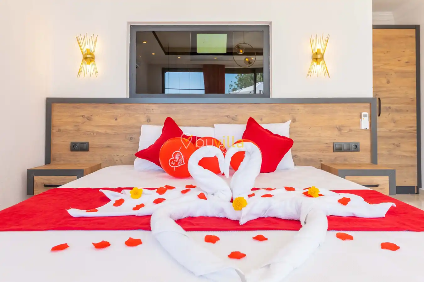 Özel yüzme havuzu ve havuz terası dışarıdan görünmeyecek şekilde planlanmış olup, sakin ve rahat bir tatil atmosferi sunar. Yatak odasında yer alan jakuzi detayı ise tatilinize ekstra konfor ve romantik bir dokunuş katmaktadır.