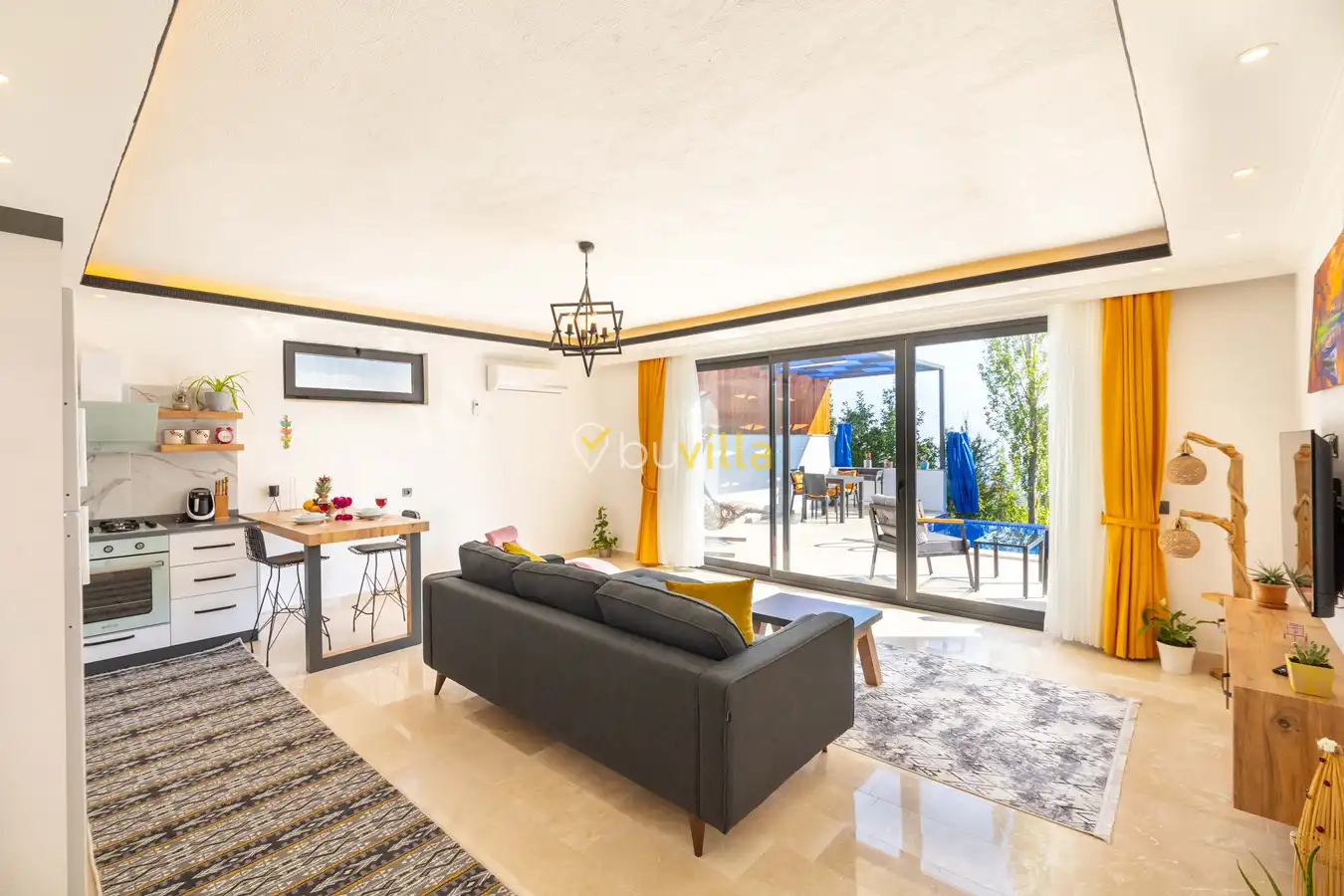 Kalkan’ın İslamlar bölgesinde konumlanan Villa Ayaz 1, 1 yatak odası ve 2 kişilik konaklama kapasitesi ile özellikle balayı çiftleri için tasarlanmış özel bir tatil villasıdır.