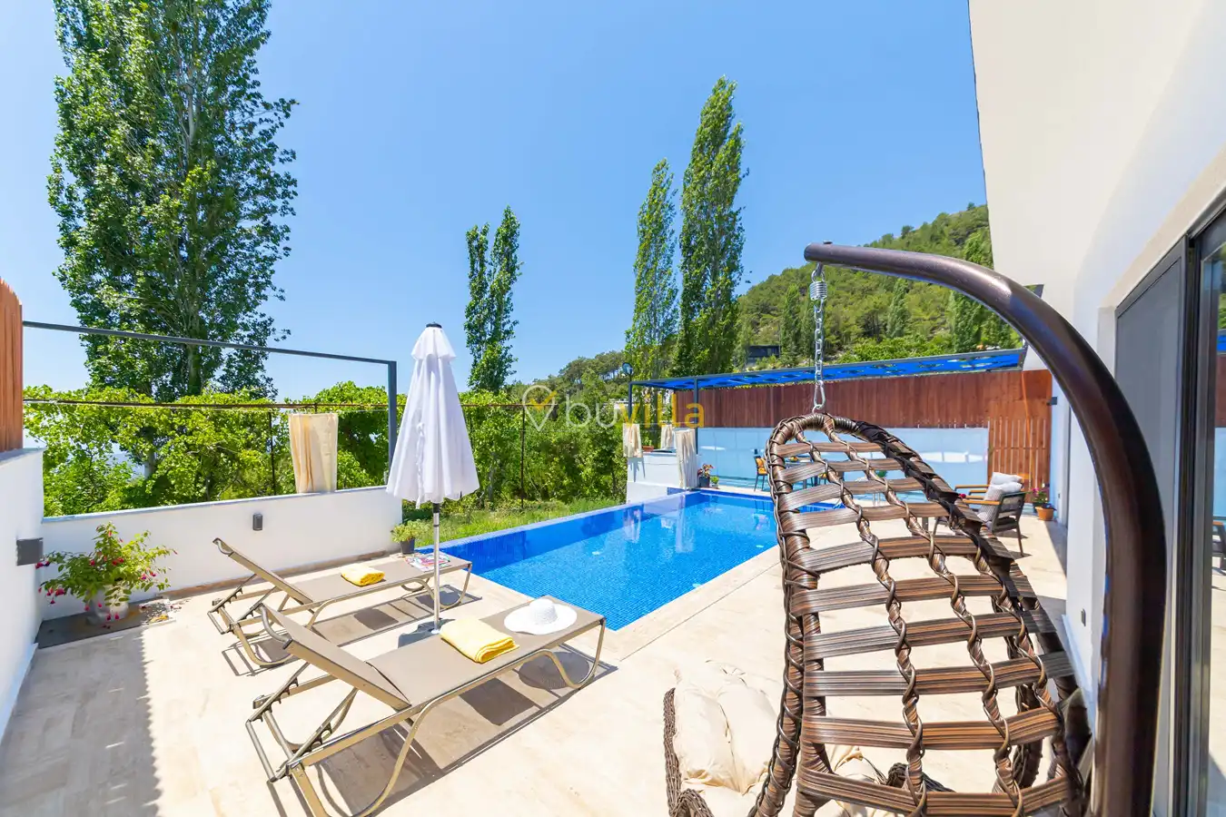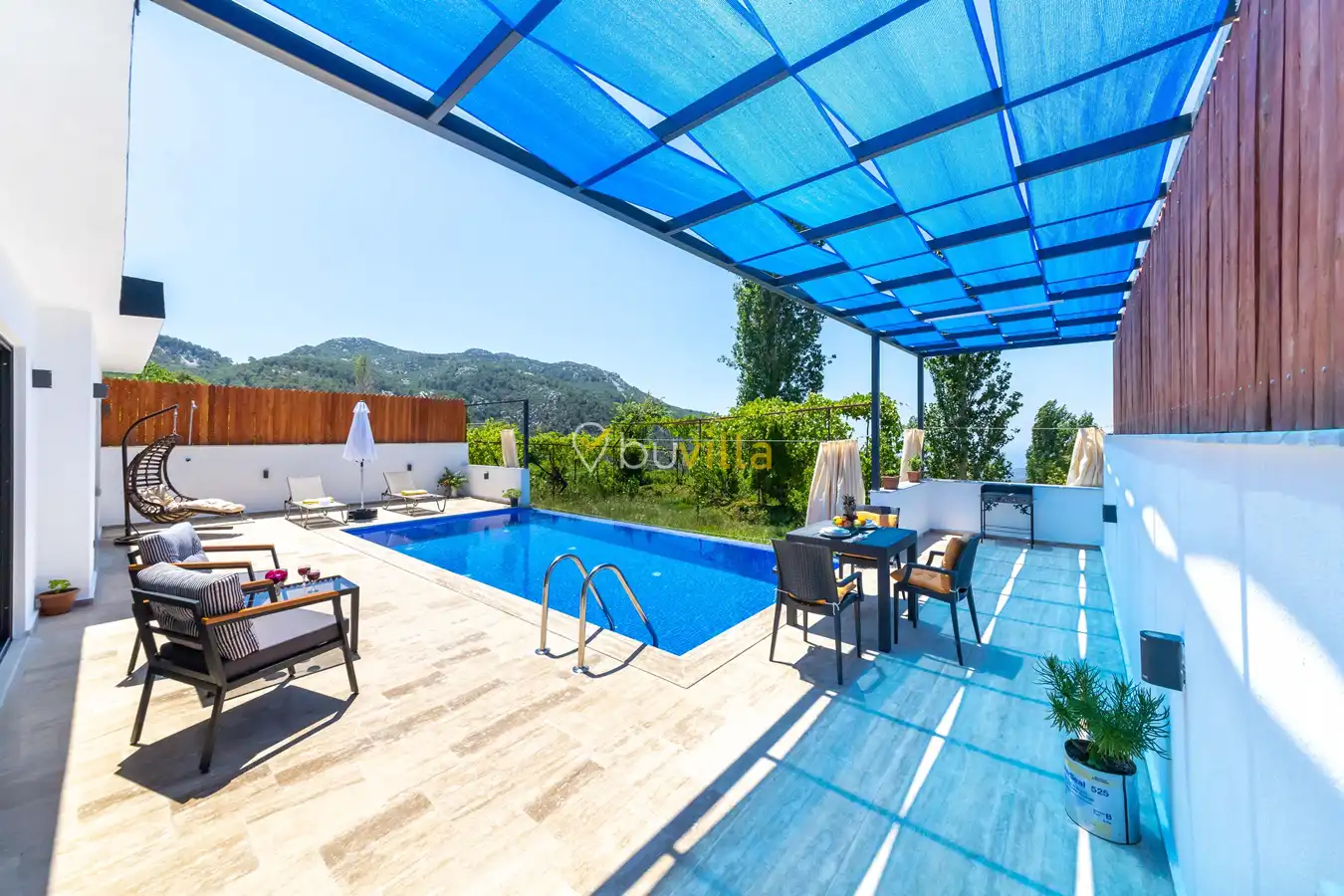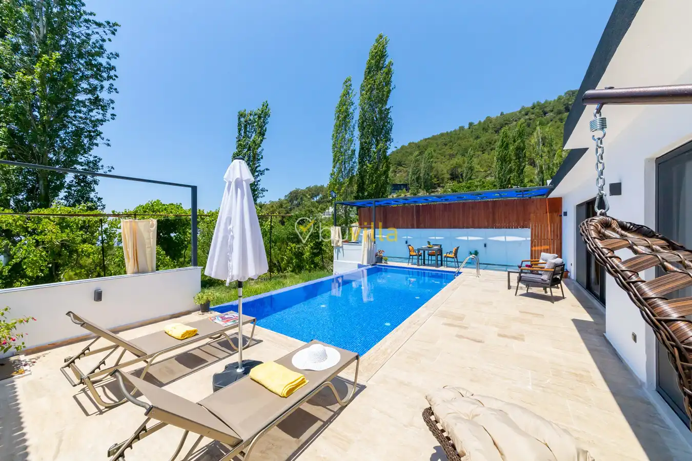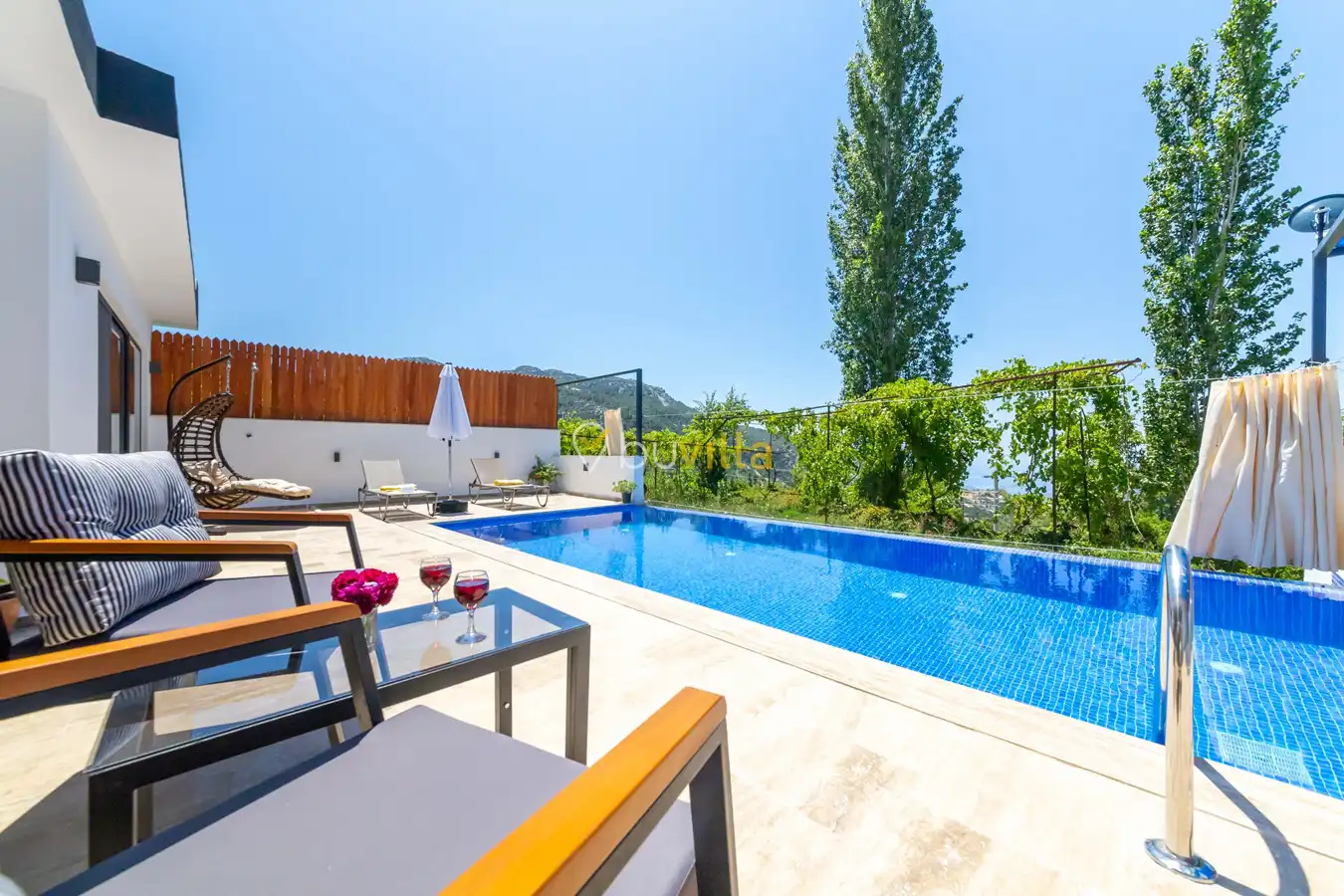 Villa Ayaz 2, Kalkan’ın İslamlar bölgesinde doğa ile iç içe konumlanan, balayı çiftleri için özel olarak tasarlanmış şık bir tatil villasıdır.