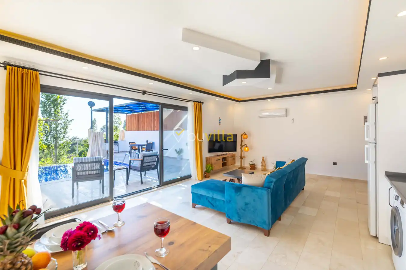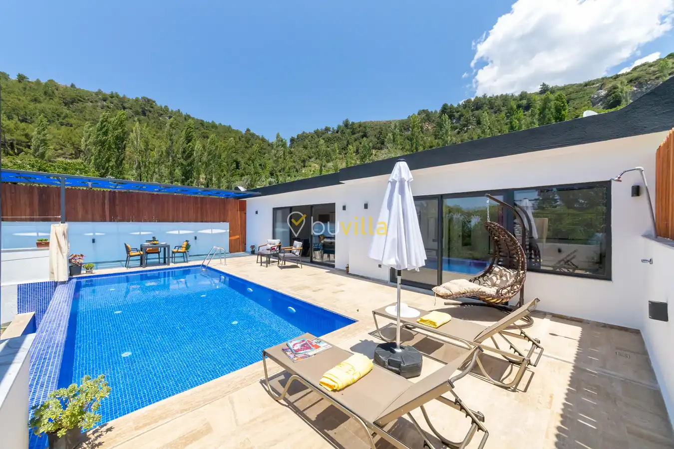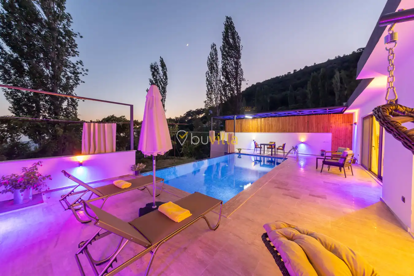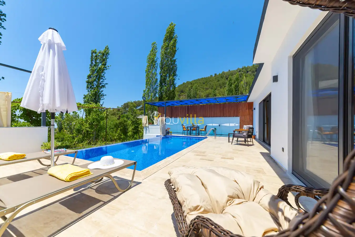 Villa Ayaz 2, Kalkan’ın İslamlar bölgesinde doğa ile iç içe konumlanan, balayı çiftleri için özel olarak tasarlanmış şık bir tatil villasıdır.
