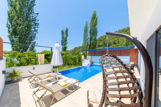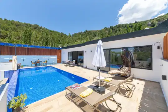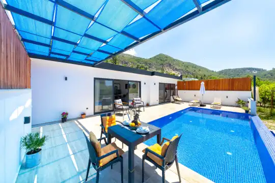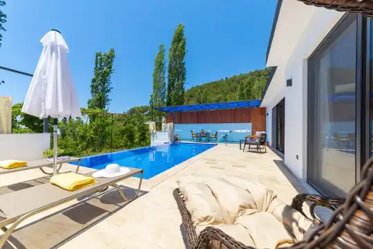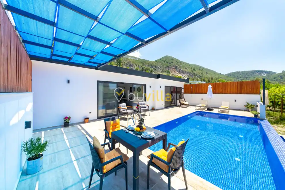 Misafirlerimizin rahatlığı düşünülerek özel yüzme havuzu ve havuz terası dışarıdan görünmeyecek şekilde planlanmıştır. Sakin ve huzurlu atmosferiyle öne çıkan Villa Ayaz 2, Kalkan merkeze araçla yaklaşık 10–15 dakika mesafede yer almaktadır.