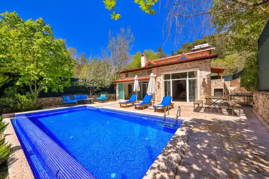 Kalkan Saribelen mevkiinde 3 yatak 6 kisi kapasitesindedir. Kiralik villamiz doga içerisinde kus civiltilari esliginde çok keyifli bir tatil imkâni sunmaktadir. Genis bahçe alani bulunan villamizin kapali havuzu bulunmaktadir. Çocuklu aileler için uygun seçen olan villamiz da ihtiyaç duyabileceginiz tüm ekipmanlar bulunmaktadir. Etrafi korunakli hale getirilen villamiz muhafazakâr aile ve balayi çiftleri için uygun bir seçenektir. Kiralik villamiz muhtesem bir tatil için misafirlerini agirlamayi beklemektedir.