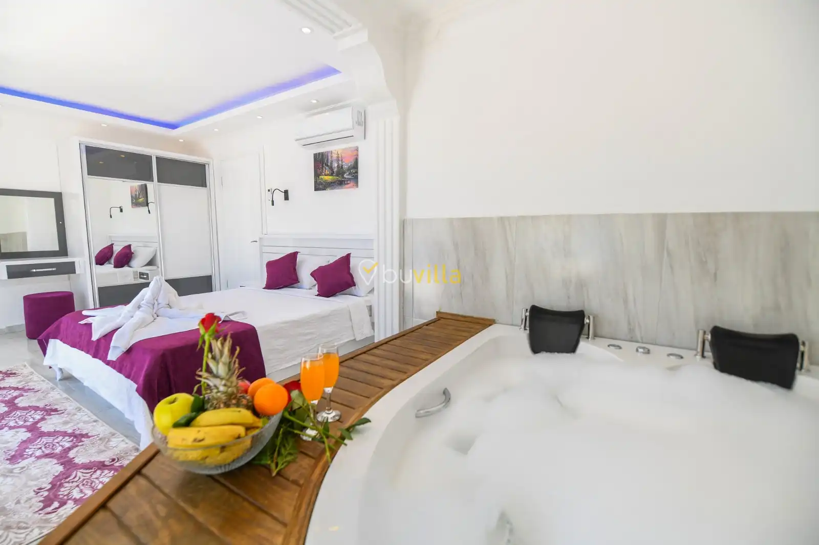 2 yatak odalı ve 4 kişi kapasiteli olan villamız, jakuzili yapısıyla misafirlerine rahatlatıcı bir deneyim sunarken, içerisindeki oyun aktiviteleri sayesinde tatilinize eğlence katmaktadır.