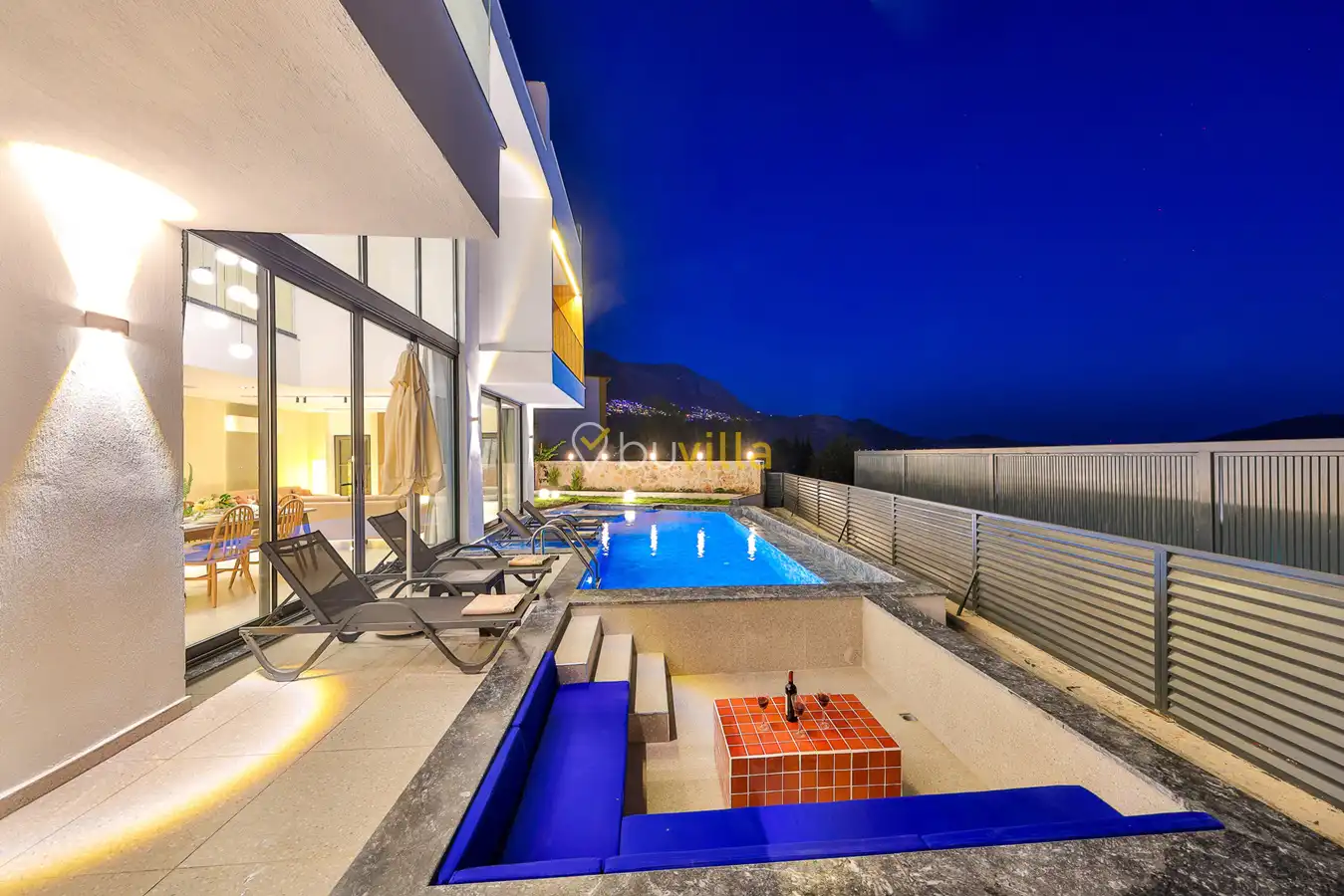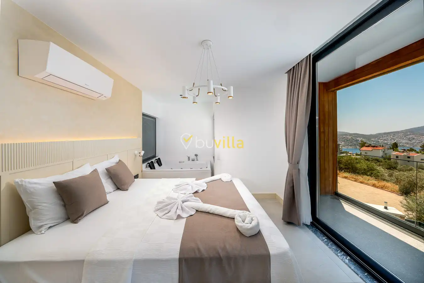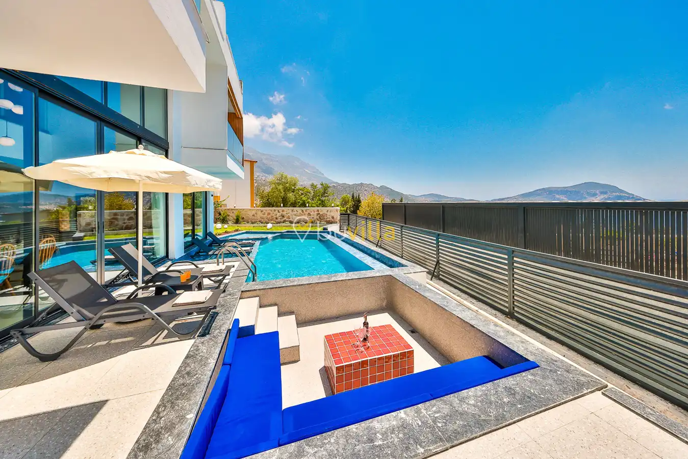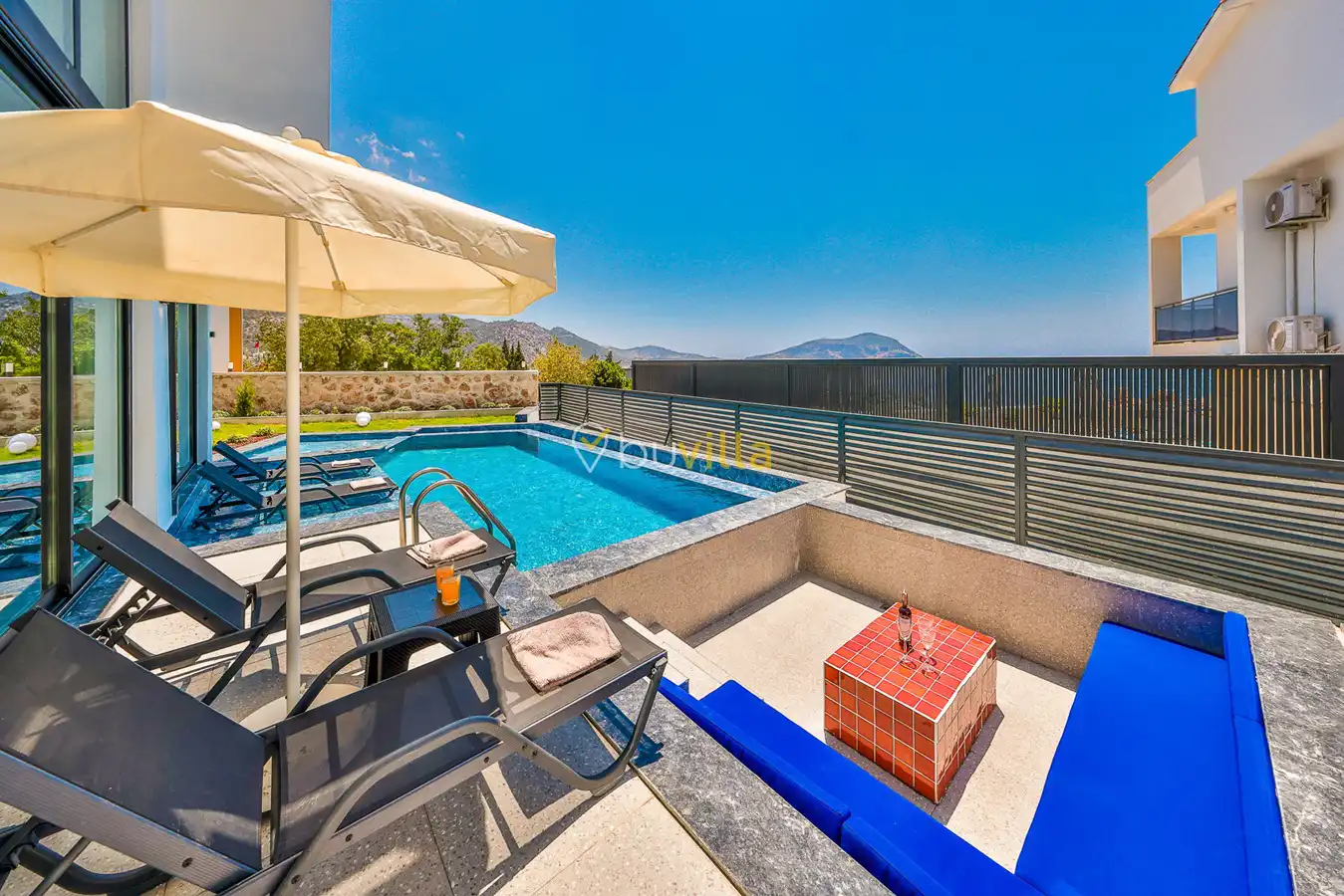 Size özel bu villa, denize karşı jakuzi keyfini yaşamanız için mükemmel bir ortam sunarken, denize olan uzaklığı ise yaklaşık 1 km’dir.