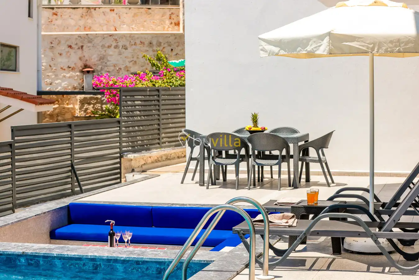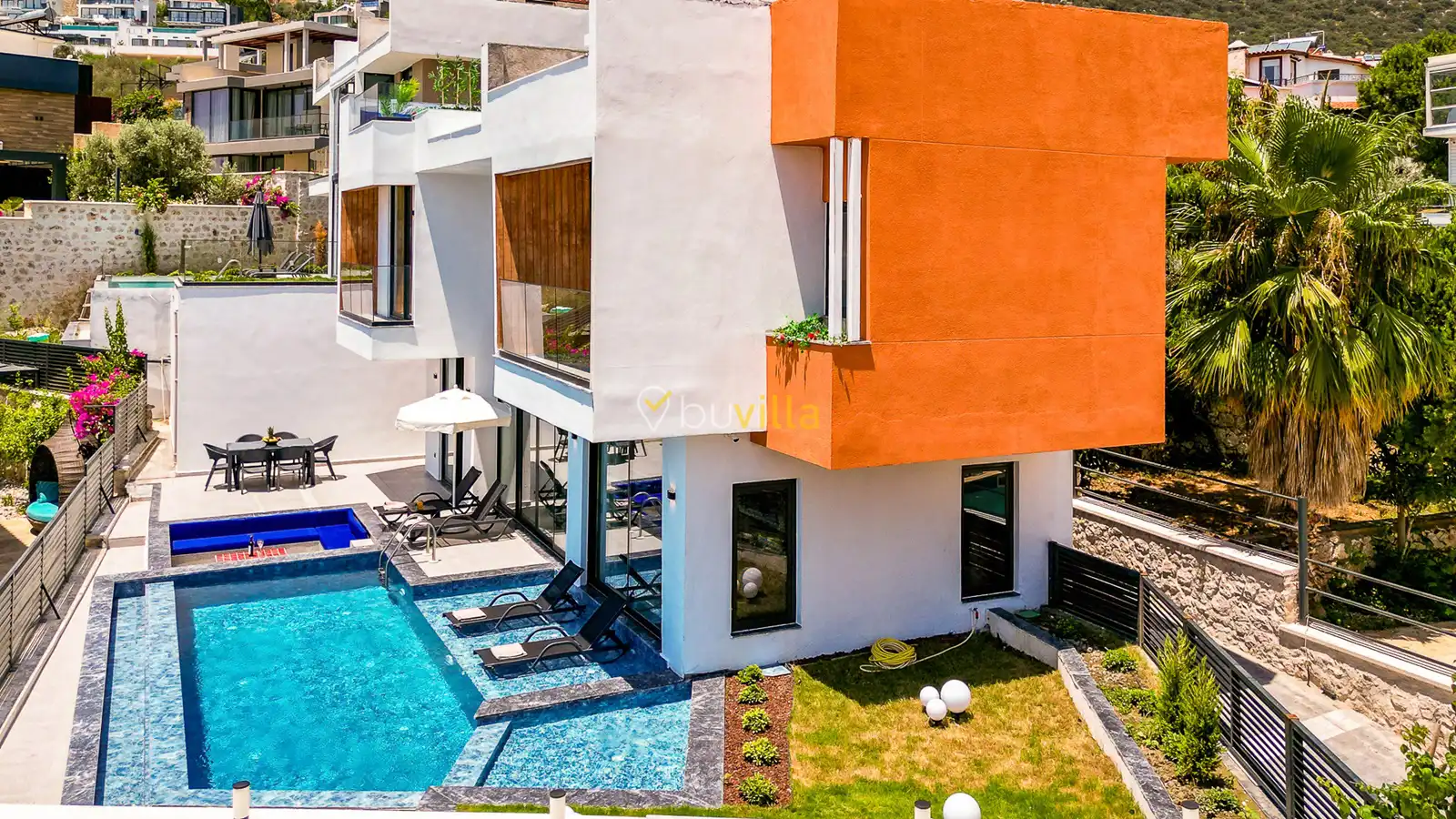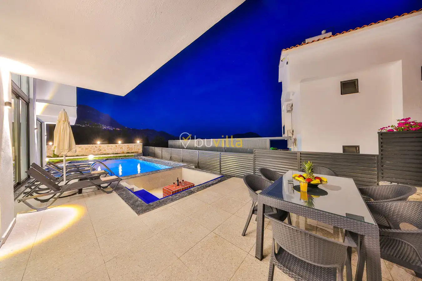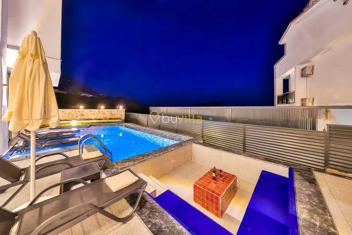 Size özel bu villa, denize karşı jakuzi keyfini yaşamanız için mükemmel bir ortam sunarken, denize olan uzaklığı ise yaklaşık 1 km’dir.