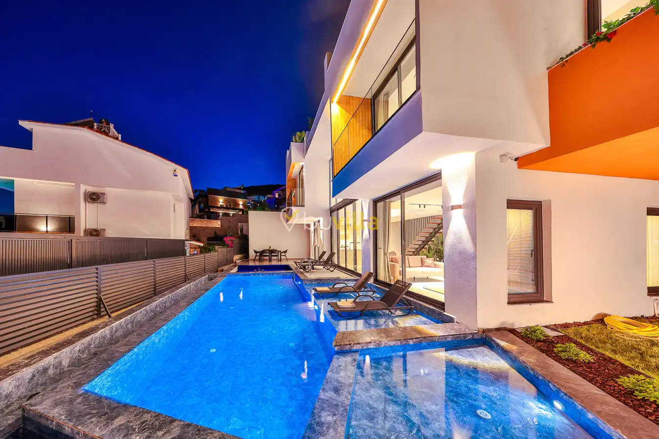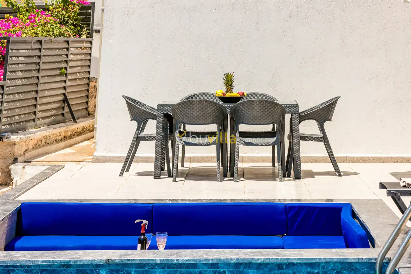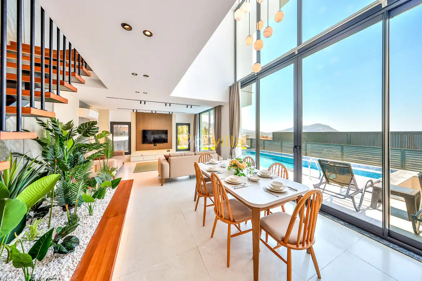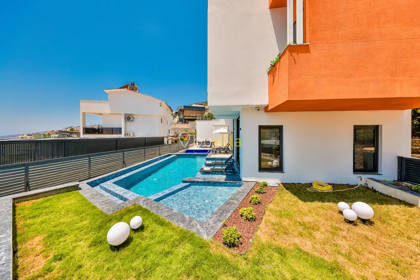 Size özel bu villa, denize karşı jakuzi keyfini yaşamanız için mükemmel bir ortam sunarken, denize olan uzaklığı ise yaklaşık 1 km’dir.