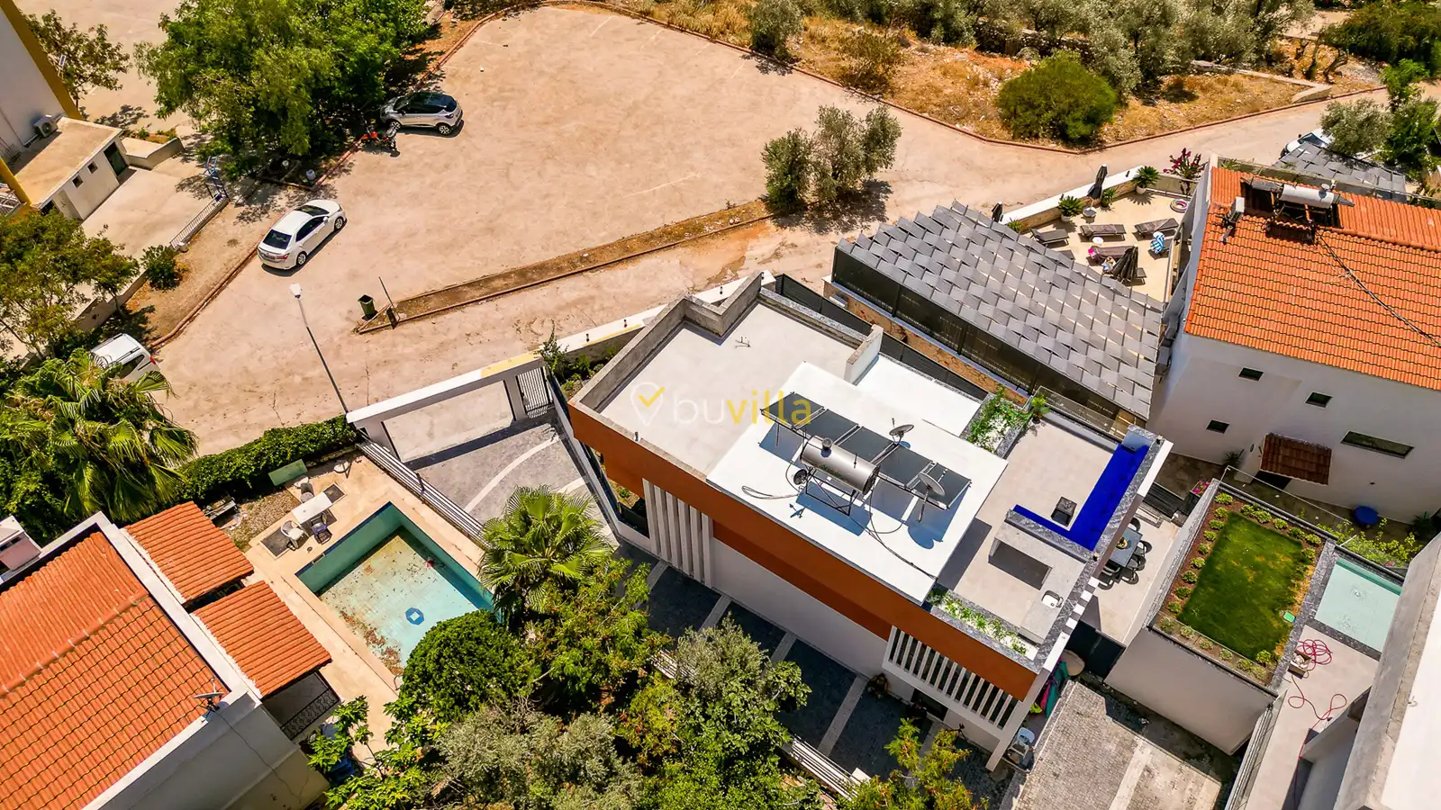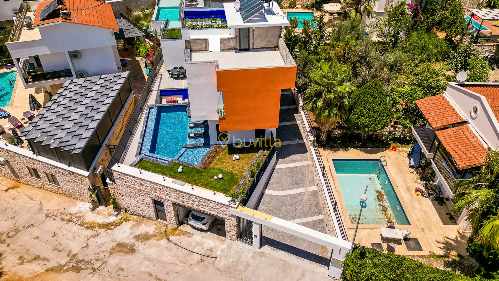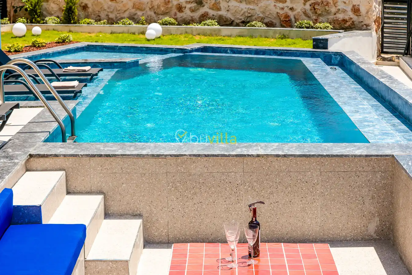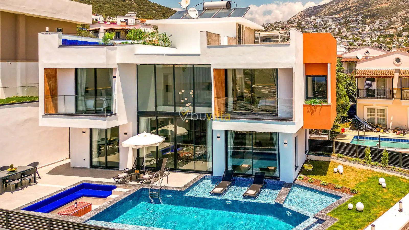 Size özel bu villa, denize karşı jakuzi keyfini yaşamanız için mükemmel bir ortam sunarken, denize olan uzaklığı ise yaklaşık 1 km’dir.