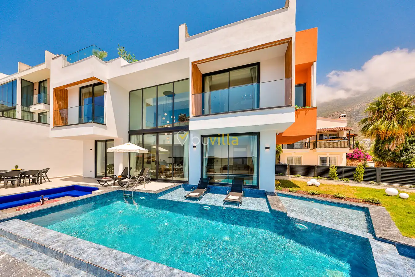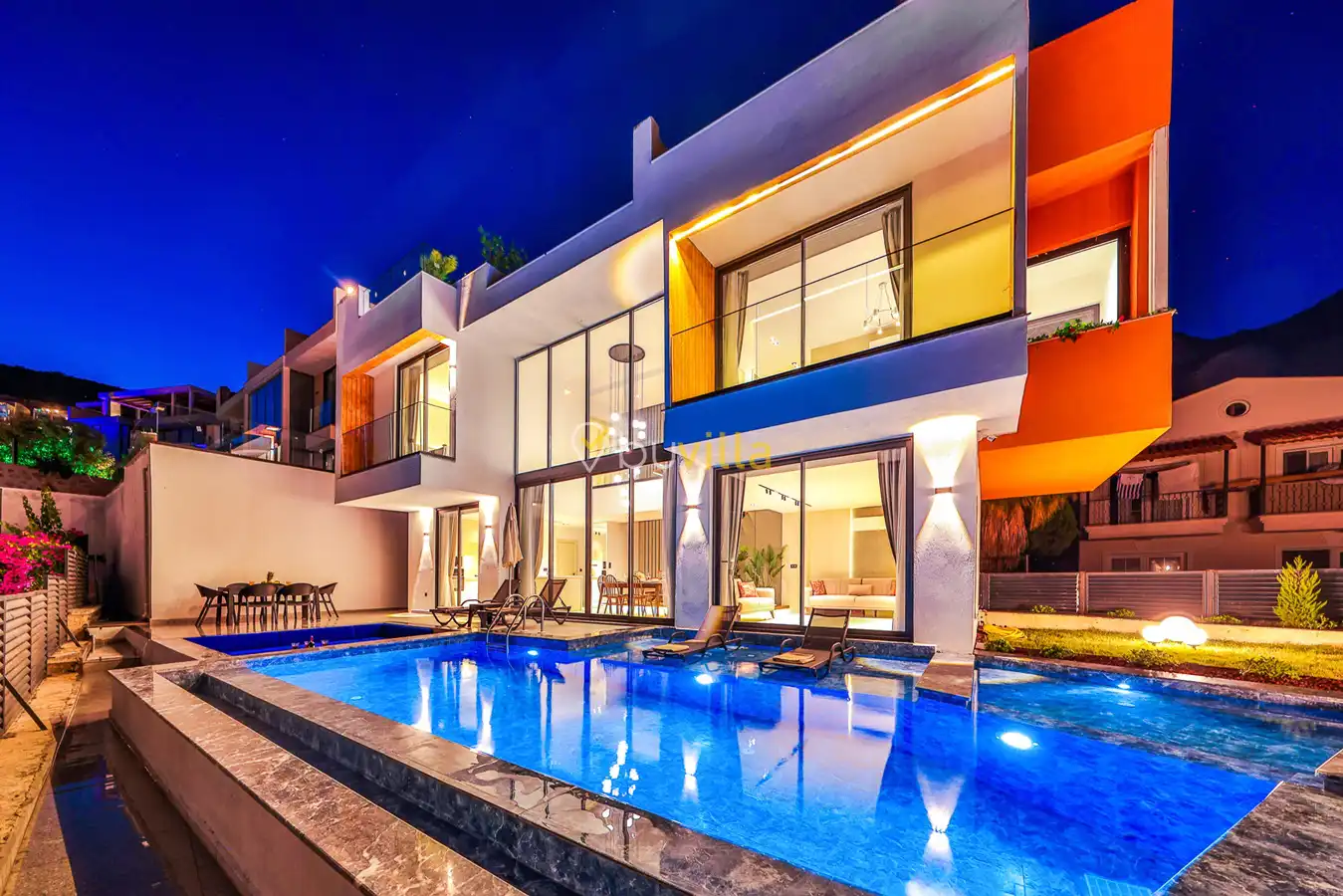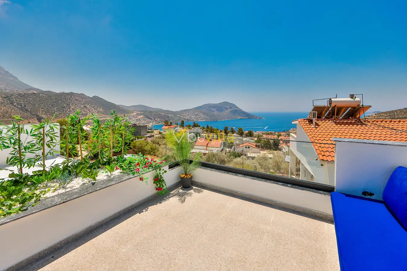 Kalkan merkezde yer alan villamız, balayı çiftleri ve çekirdek aileler için ideal bir tatil seçeneği sunmaktadır. İki yatak odasıyla dört kişiye kadar konaklama kapasitesine sahip olan villamız, kısmi deniz manzaralı ve jakuzili villalar kategorisinde yer alır. Denize ve merkeze yürüme mesafesinde bulunan bu modern mimariye sahip villa, deniz manzarası eşliğinde huzurlu bir tatil imkanı sunar.