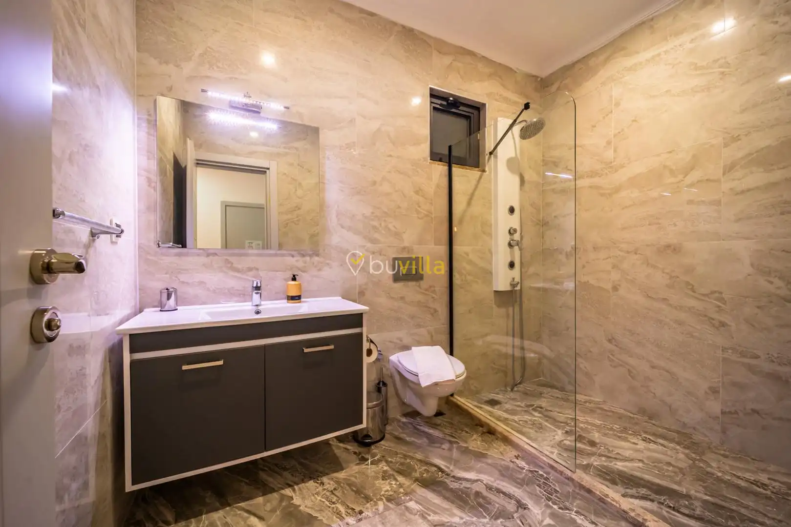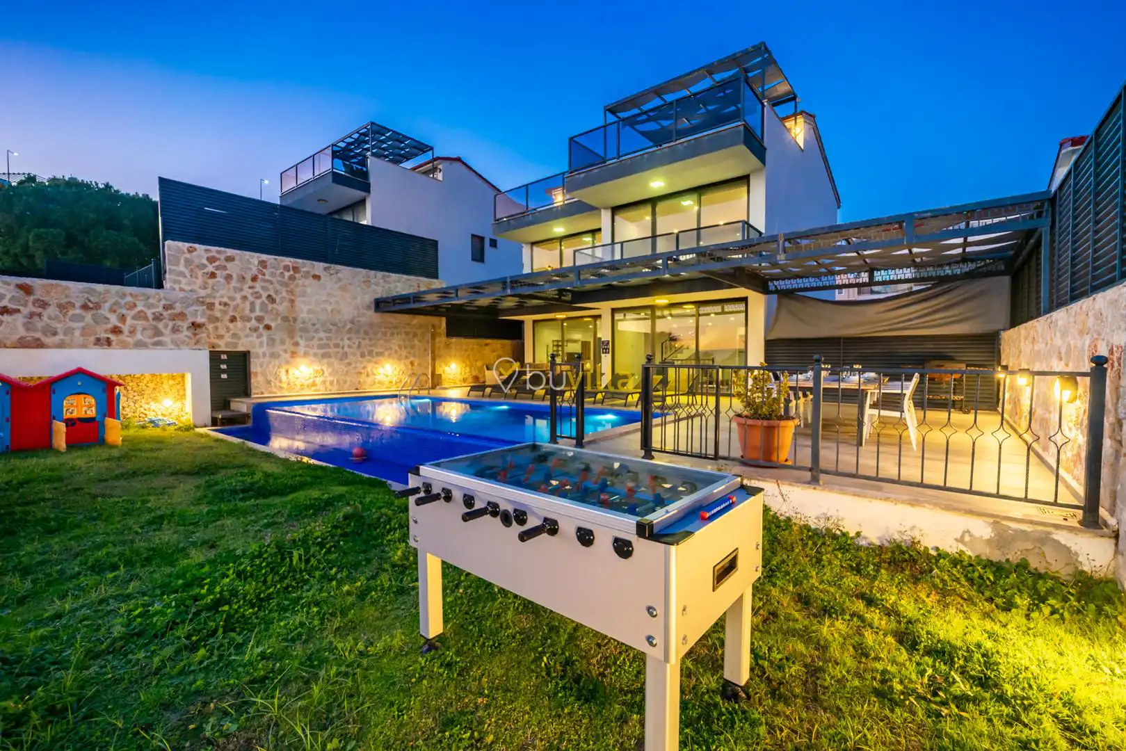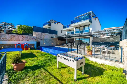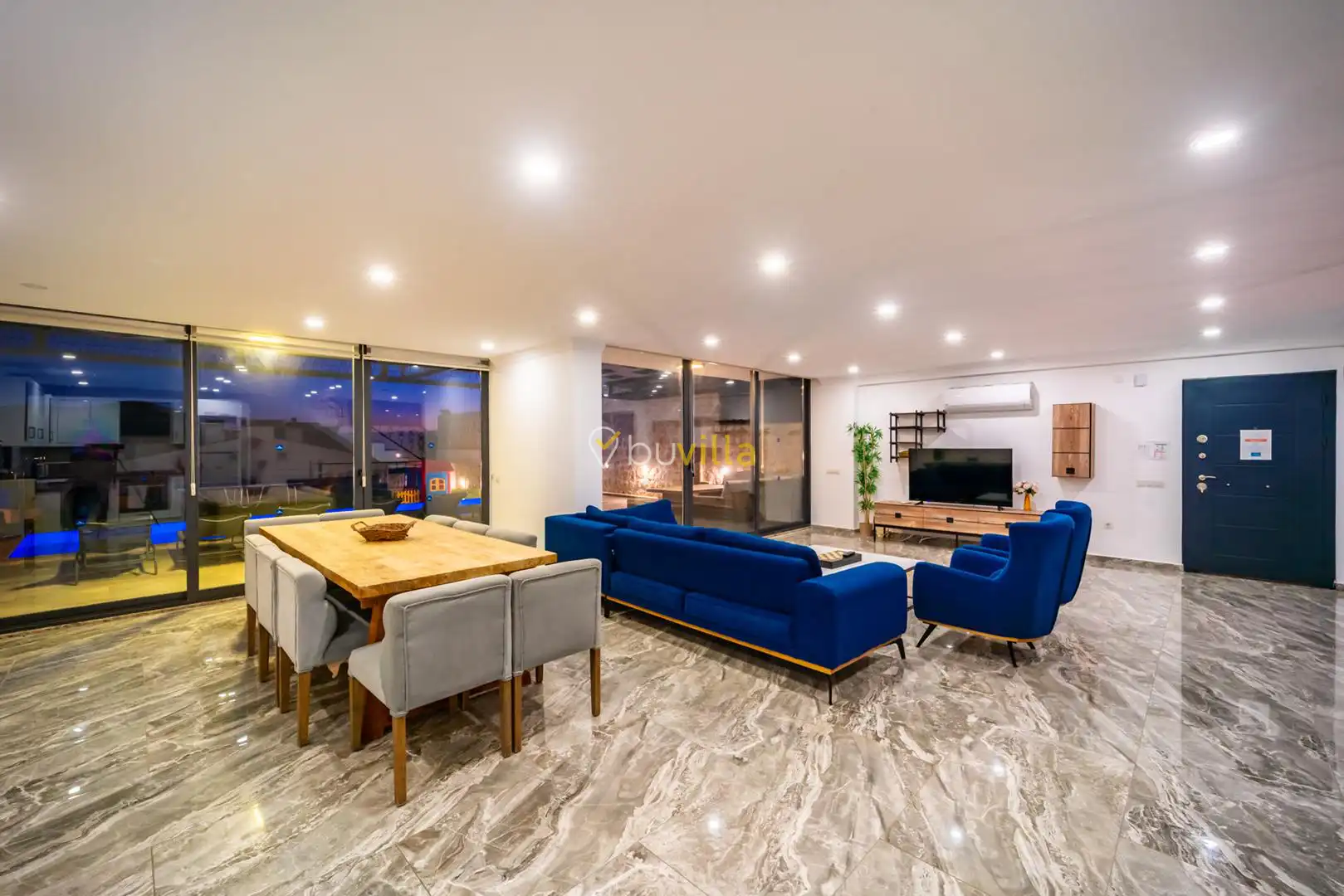 Modern mimarisi ve konfor odaklı tasarımıyla dikkat çeken villamız, ferah iç mekânlarıyla misafirlerine üst düzey bir tatil deneyimi vadeder. Geniş bahçe alanında yer alan özel yüzme havuzu, şezlonglar, güneş şemsiyeleri, konforlu oturma grubu, yemek masası ve barbekü alanı; açık havada keyifli vakit geçirmek isteyen misafirler için özenle hazırlanmıştır.