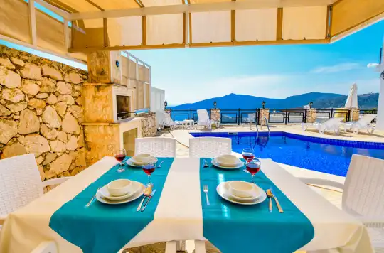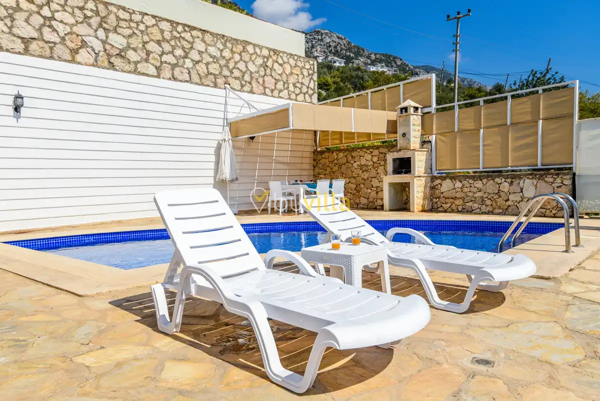 Kalkan’ın popüler bölgelerinden biri olan Kördere mevkiinde konumlanan Villa Bella Vista, 2 yatak odası ve 4 kişilik konaklama kapasitesi ile deniz ve şehir manzarasını bir arada sunan özel bir kiralık villadır.