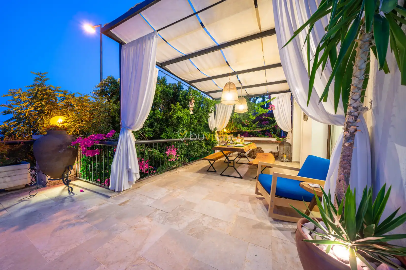 Geniş teras alanı ve muhteşem deniz manzarasıyla Villa Bergamot, gün batımını izleyebileceğiniz, sevdiklerinizle keyifli anılar biriktirebileceğiniz özel bir tatil deneyimi sunmaktadır.