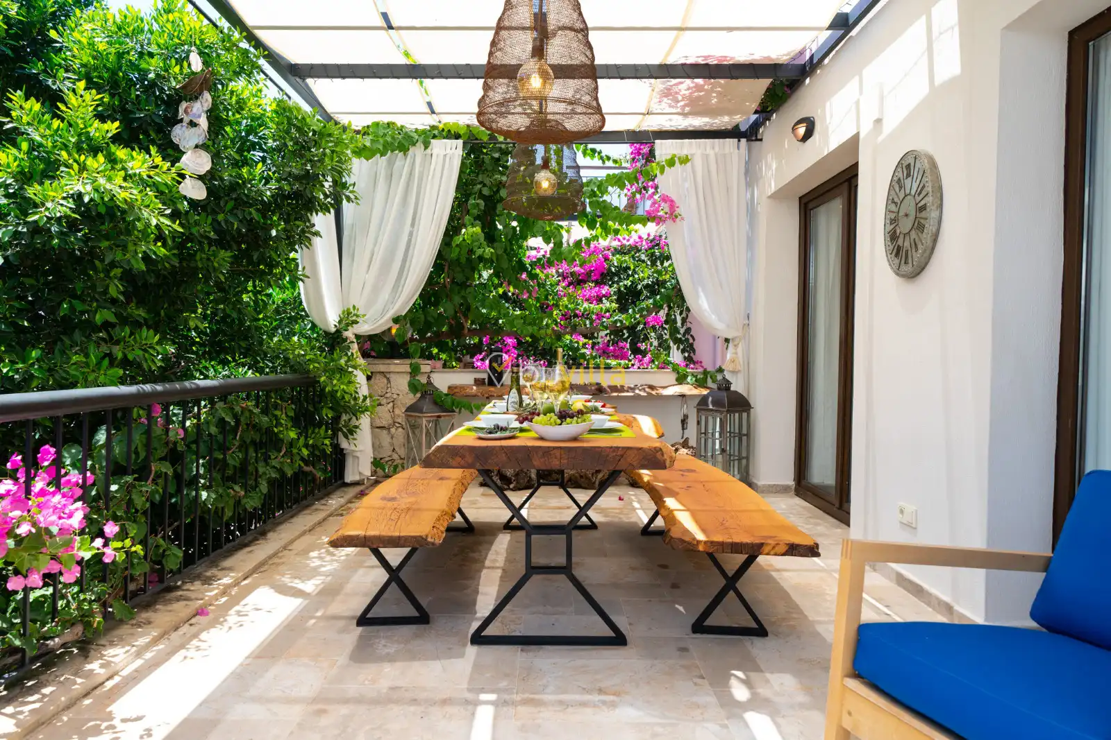 Villamız, Kalkan merkeze yaklaşık 10 dakikalık yürüme mesafesinde konumlanmaktadır. Bu avantajlı konumu sayesinde misafirlerimiz, Kalkan’ın tarihi sokaklarında gezebilir, restoran ve kafelerde keyifli vakit geçirebilir ya da kısa bir yürüyüşle plaja ulaşabilir. Aynı zamanda merkezin yoğunluğundan uzak konumu sayesinde sakin ve dinlendirici bir tatil atmosferi sunar.