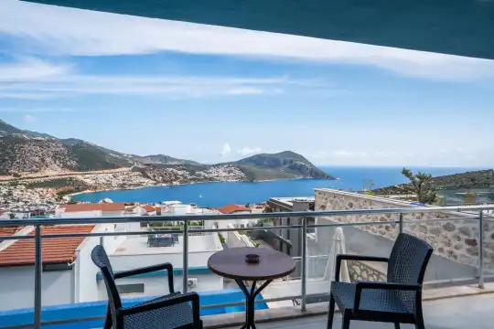 Deniz Manzarali Villa Blue White Kalkan Ortaalan mevkiinde 8 kisi kapasiteli villamiz genis ailelere uygundur. Deniz manzarasi ve lüks dizayni ile muhtesem bir tatil imkani sunmaktadir. 4 yatak odali villamizin tüm odalari suit oda seklindedir. Ayni özelliklere sahip olan Blue White ile yakin konumda bulunan iki villamiz kalabalik aileler ve arkadas gruplari için idealdir. Unutulmaz bir tatil için Villa Blue White siz degerli misafirlerini agirlamayi bekliyor.