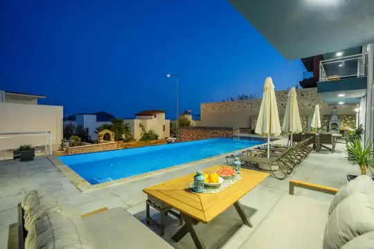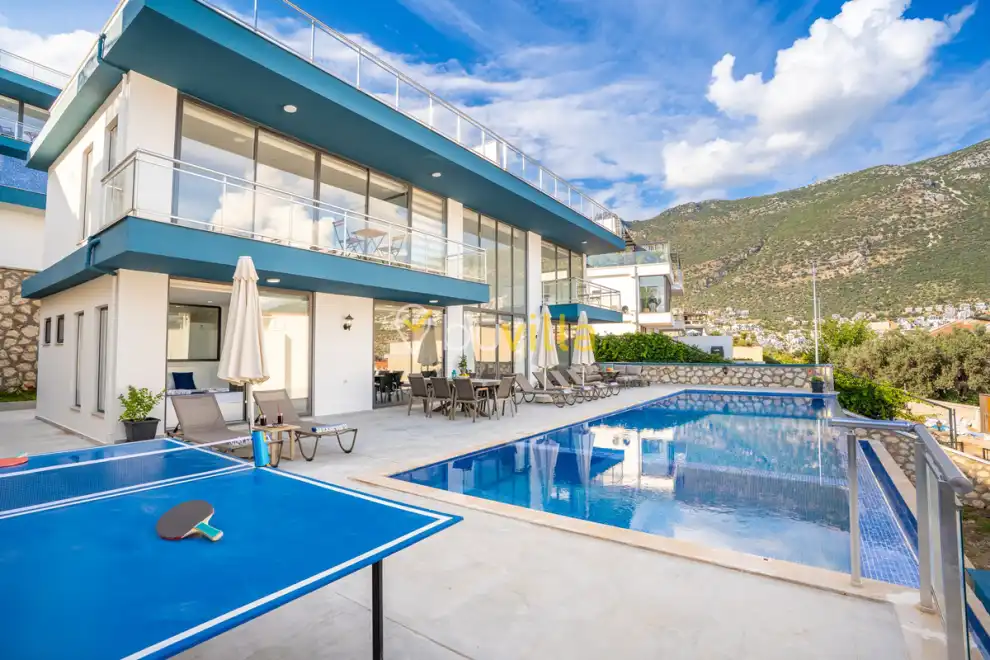 Deniz Manzarali Lüks Villa Kiralik Villa Blue White 2 , Kalkan’in gözde mekanlarindan olan Ortaalan mevkiinde yer almaktadir. 4 yatak odali 8 kisi kapasiteli deniz manzarali bir villadir. Kiralik villamizin tüm yatak odalarinda kendilerine ait tuvalet ve banyo yer almakta olup ana yatak odasinda hos bir jakuzi sizleri beklemektedir. Lüks dizayni ile göz dolduran villamizin tam donanimli Amerikan mutfaginda ihtiyaç duyabileceginiz tüm ekipmanlar mevcuttur. Kiralik villamizin havuz bahçe kati genis olup özel havuzunda eglenceli vakitler geçirebilirsiniz. Siz degerli misafirlerimizi Villa Blue White 2 ’ye bekliyoruz. Not: Villa Blue White in hemen üs tarafinda Villa Blue White yer almakta olup, Kalabalik aileler ve arkadas gruplari için ideal bir seçenektir.