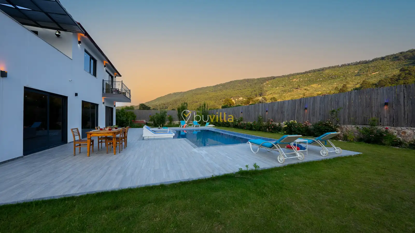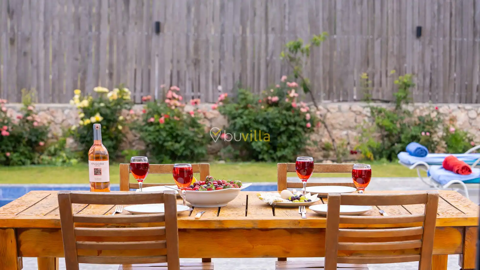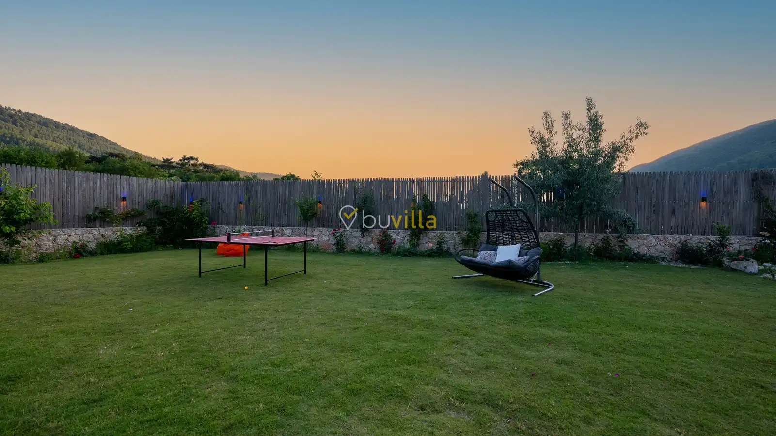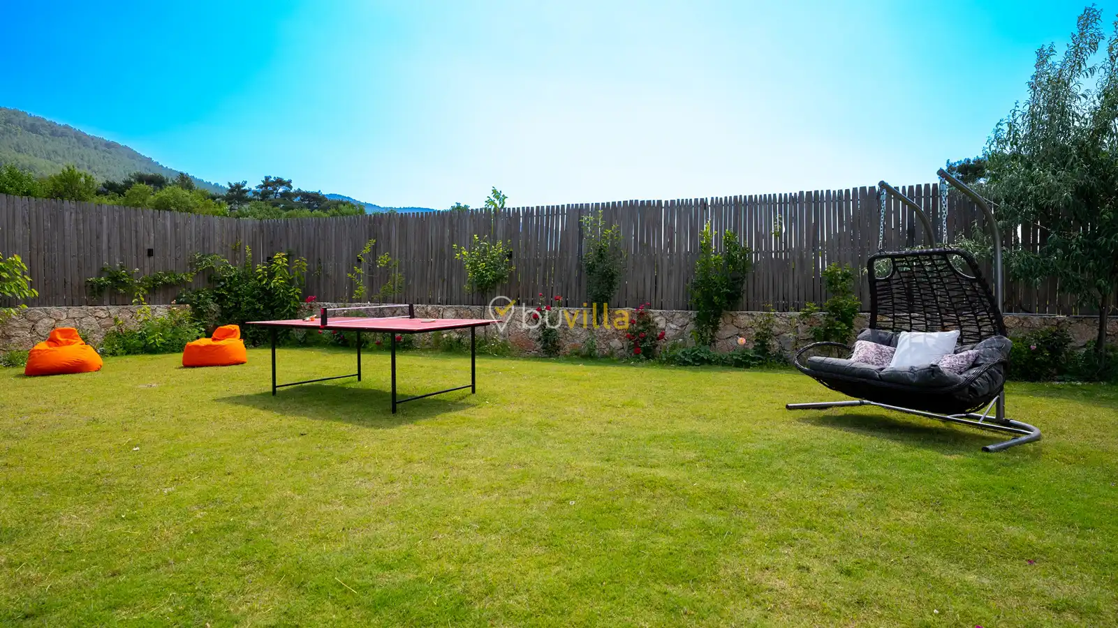 Tüm yatak odalarında banyo ve tuvalet bulunan villa, ferah ve aydınlık iç mekânlarıyla rahat bir tatil imkânı sağlar. Geniş bahçesinde barbekü alanı, güneşlenme terası, yemek masası ve masa tenisi gibi olanaklar yer alır. Şehrin kalabalığından uzak, doğayla baş başa bir tatil arayan misafirler için ideal bir seçenektir.