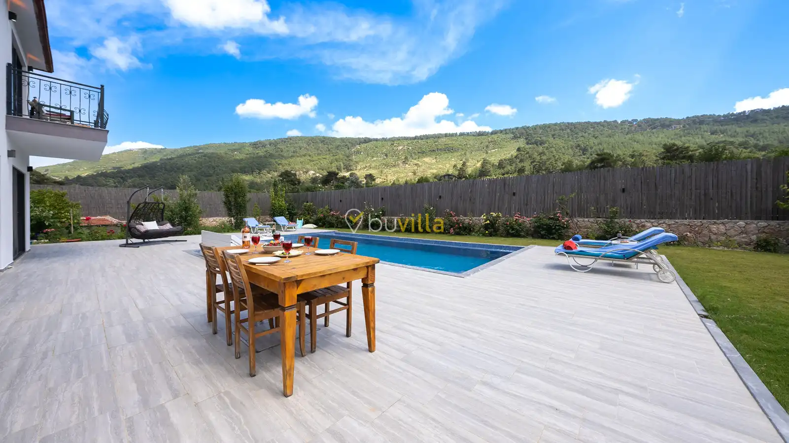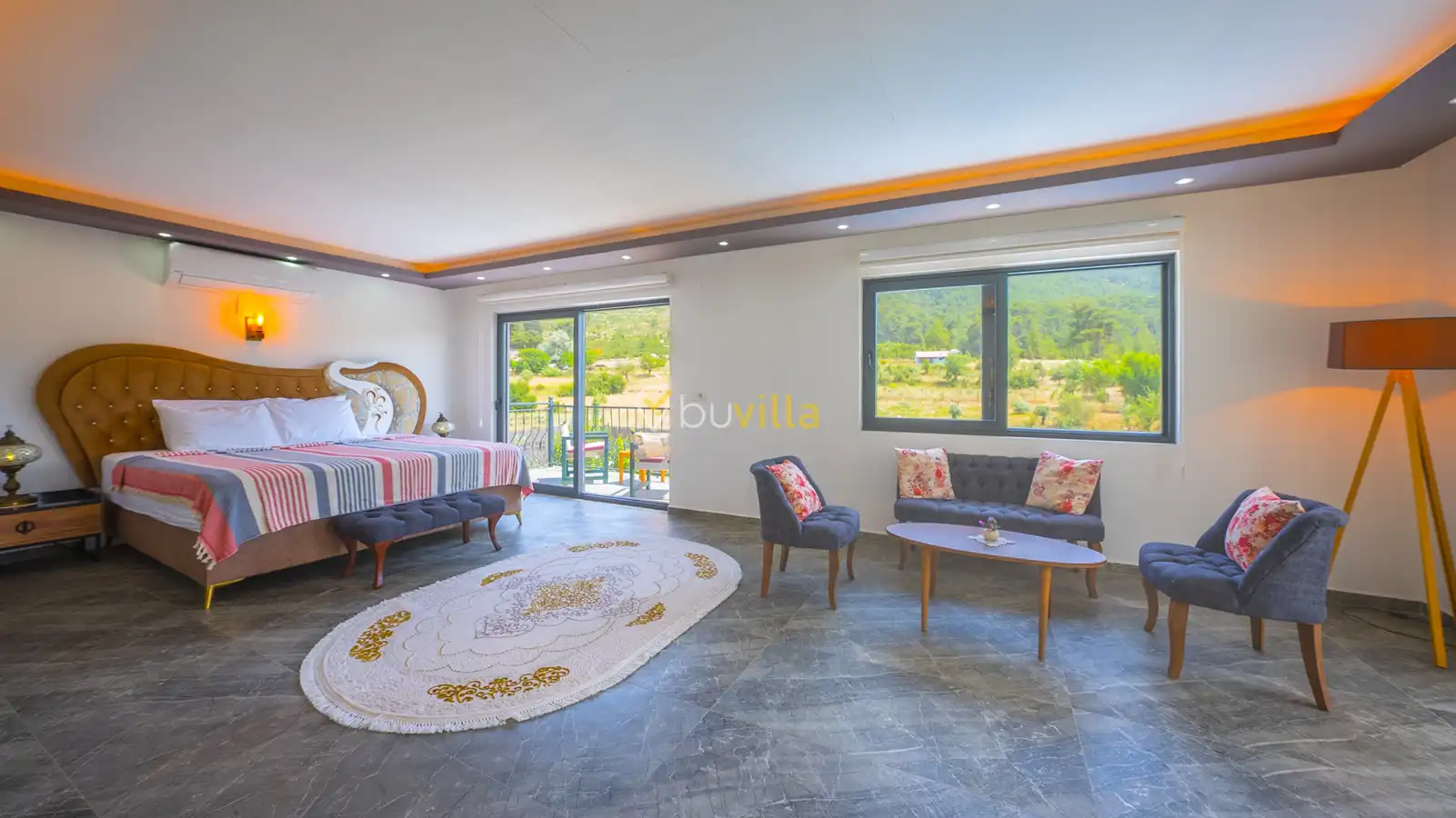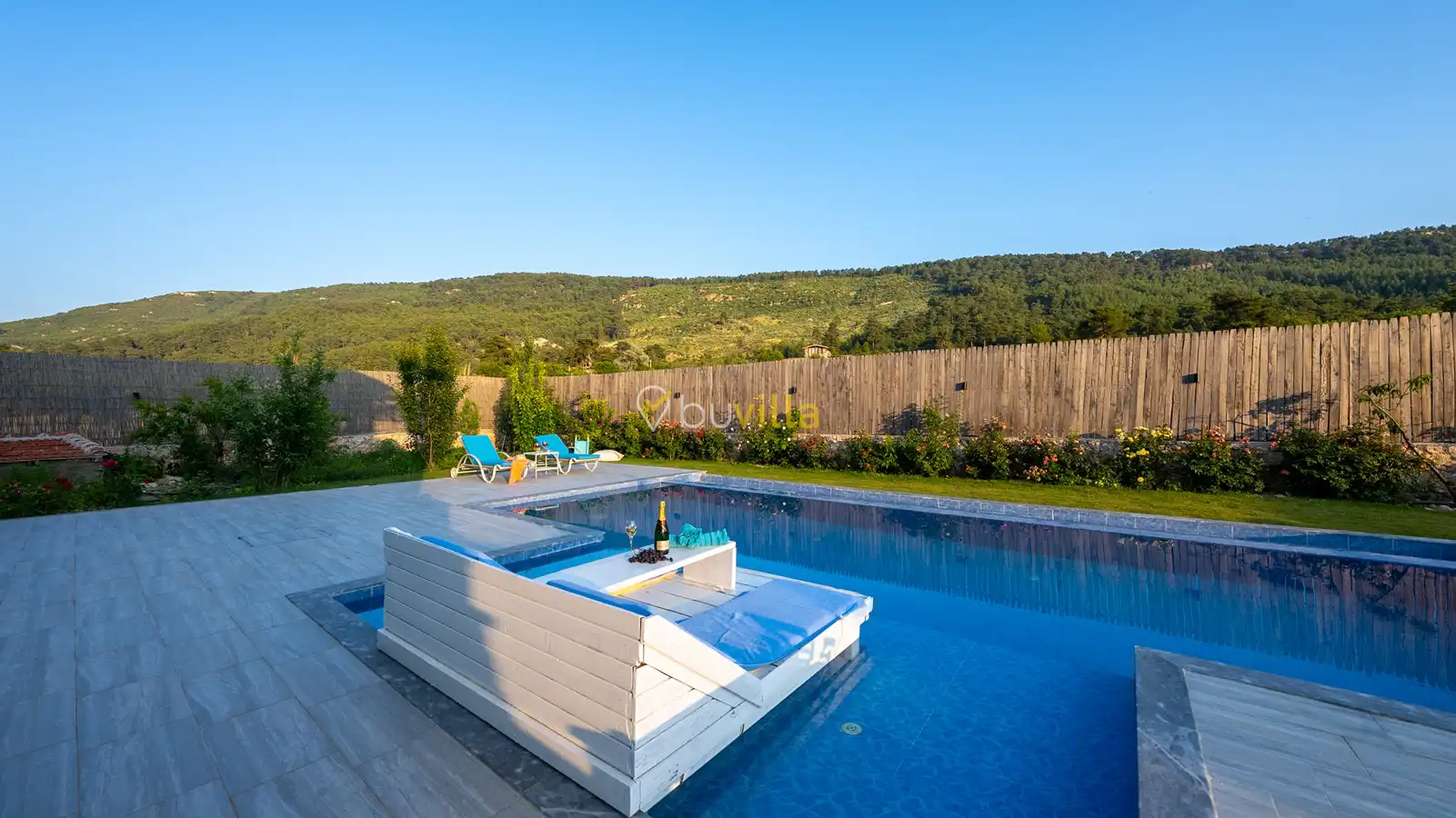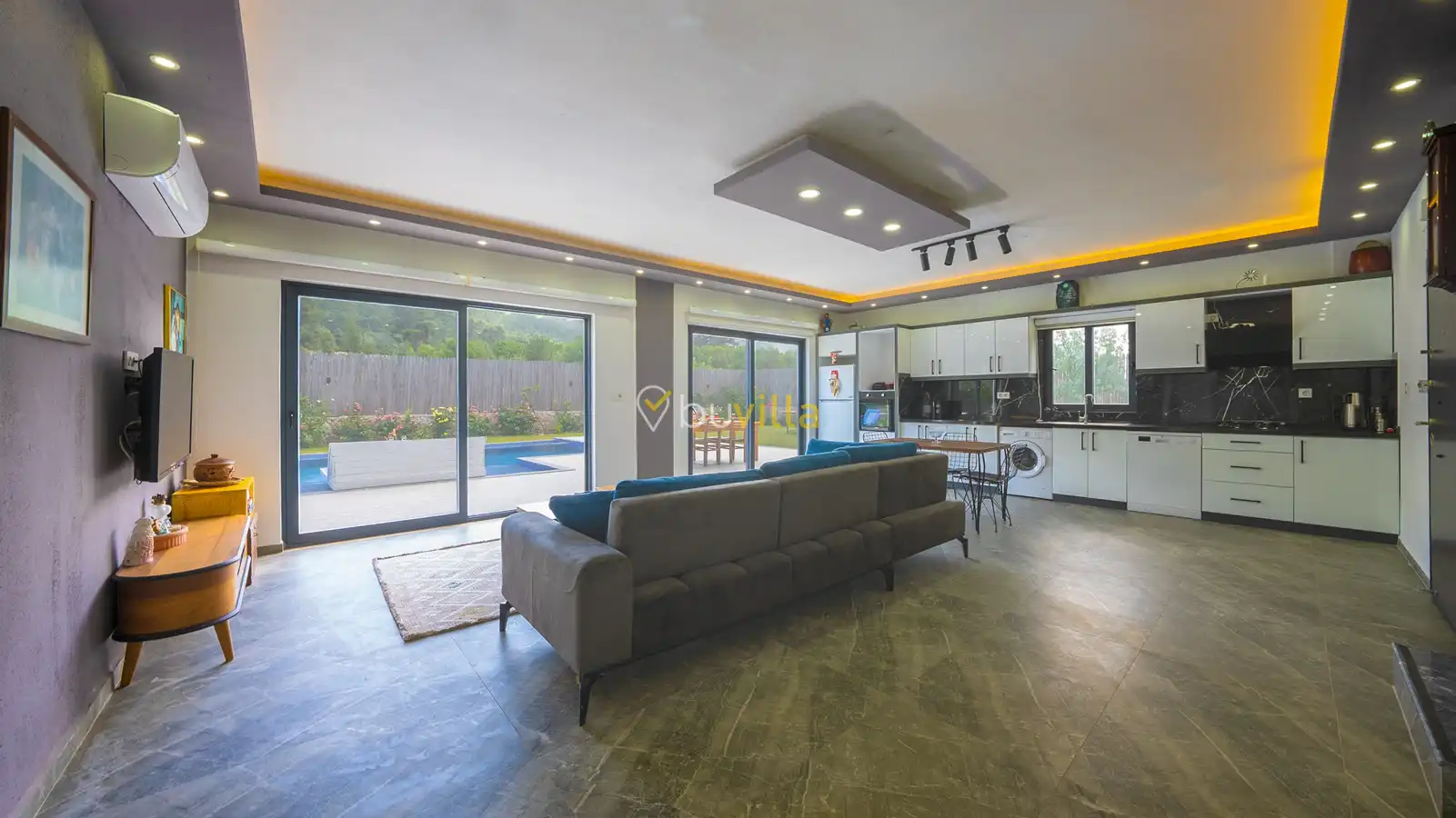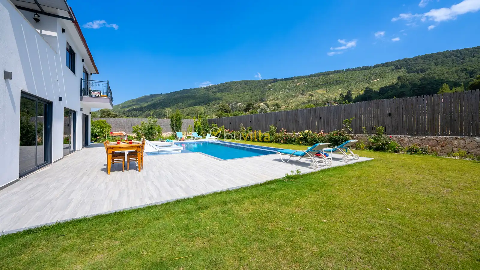 Tüm yatak odalarında banyo ve tuvalet bulunan villa, ferah ve aydınlık iç mekânlarıyla rahat bir tatil imkânı sağlar. Geniş bahçesinde barbekü alanı, güneşlenme terası, yemek masası ve masa tenisi gibi olanaklar yer alır. Şehrin kalabalığından uzak, doğayla baş başa bir tatil arayan misafirler için ideal bir seçenektir.