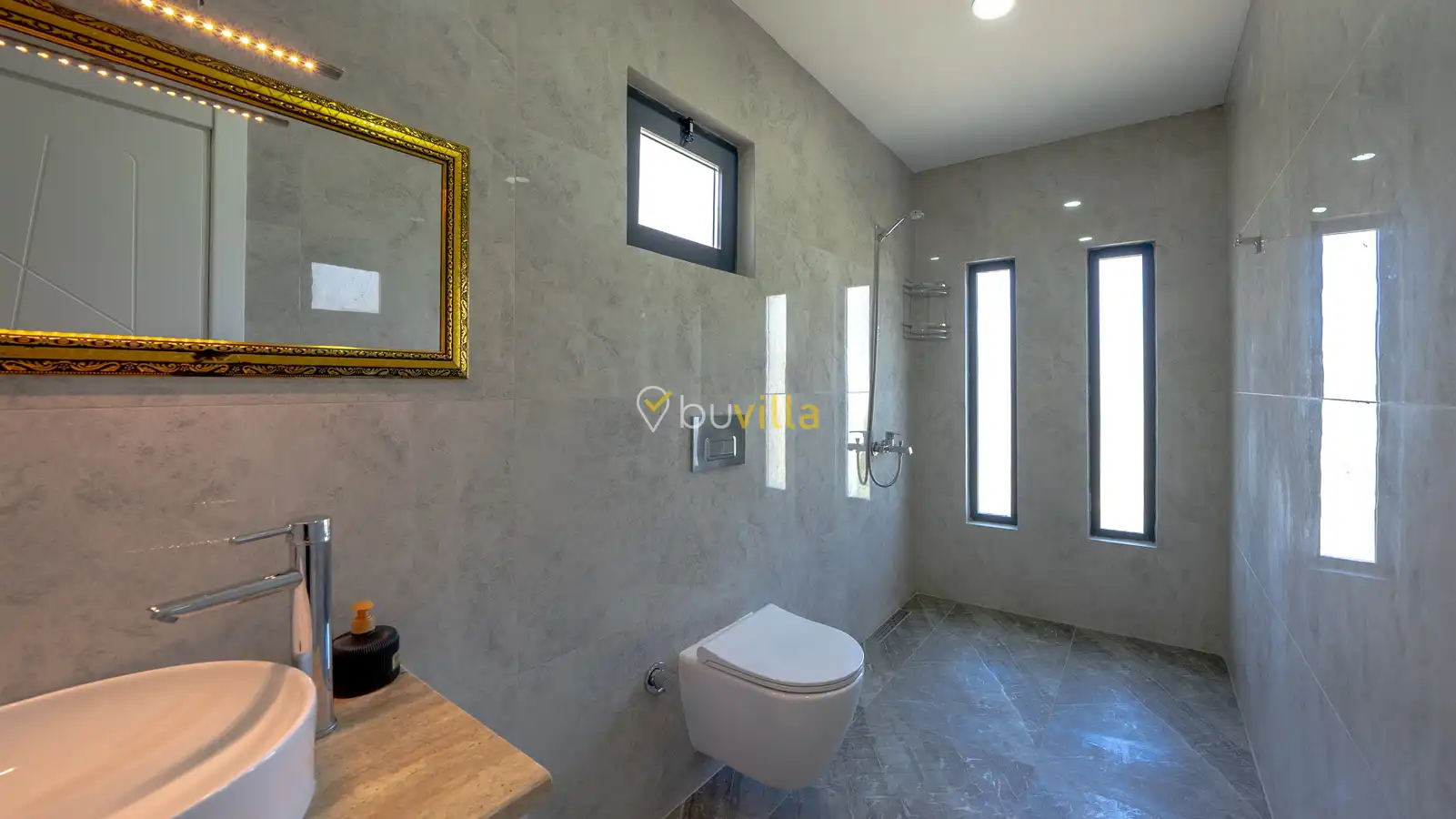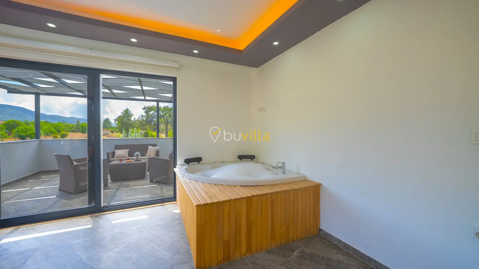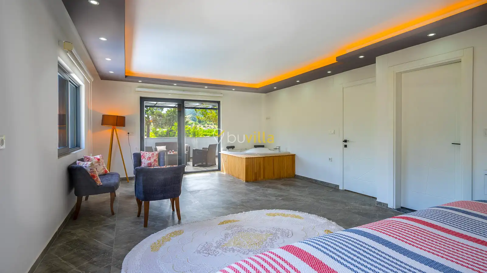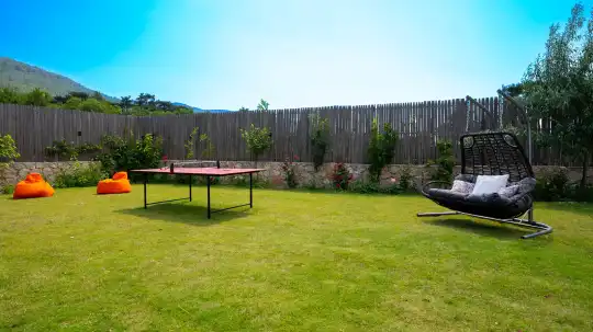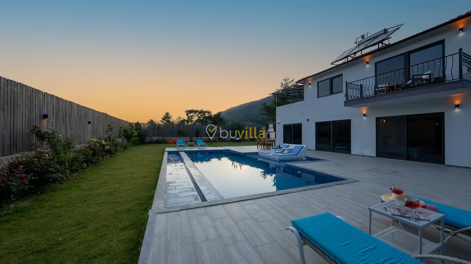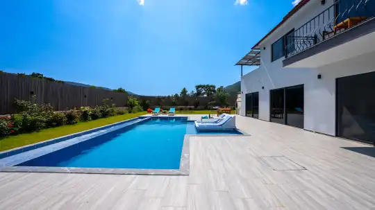 Tüm yatak odalarında banyo ve tuvalet bulunan villa, ferah ve aydınlık iç mekânlarıyla rahat bir tatil imkânı sağlar. Geniş bahçesinde barbekü alanı, güneşlenme terası, yemek masası ve masa tenisi gibi olanaklar yer alır. Şehrin kalabalığından uzak, doğayla baş başa bir tatil arayan misafirler için ideal bir seçenektir.