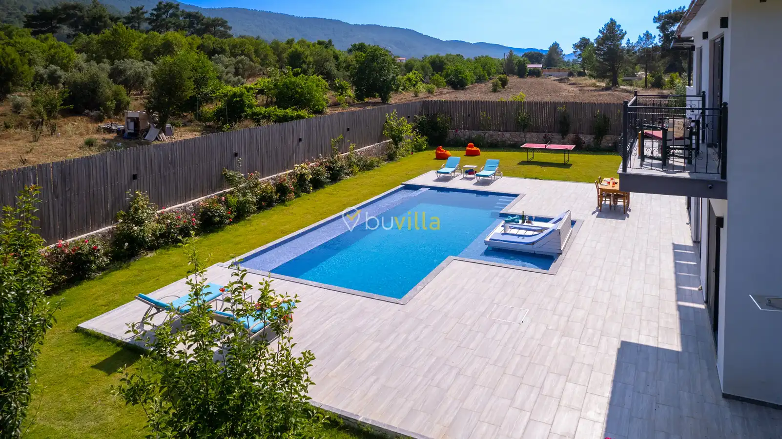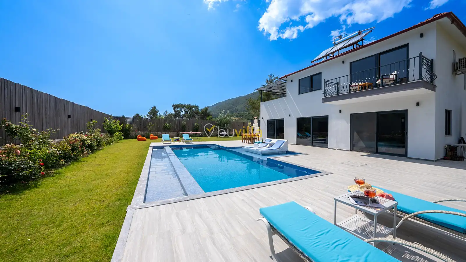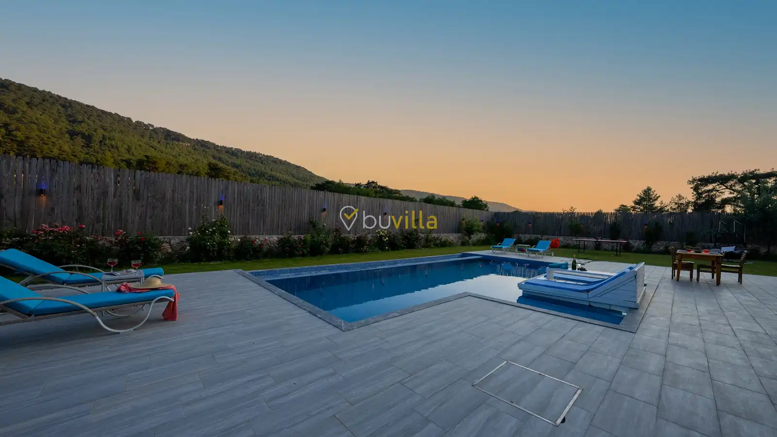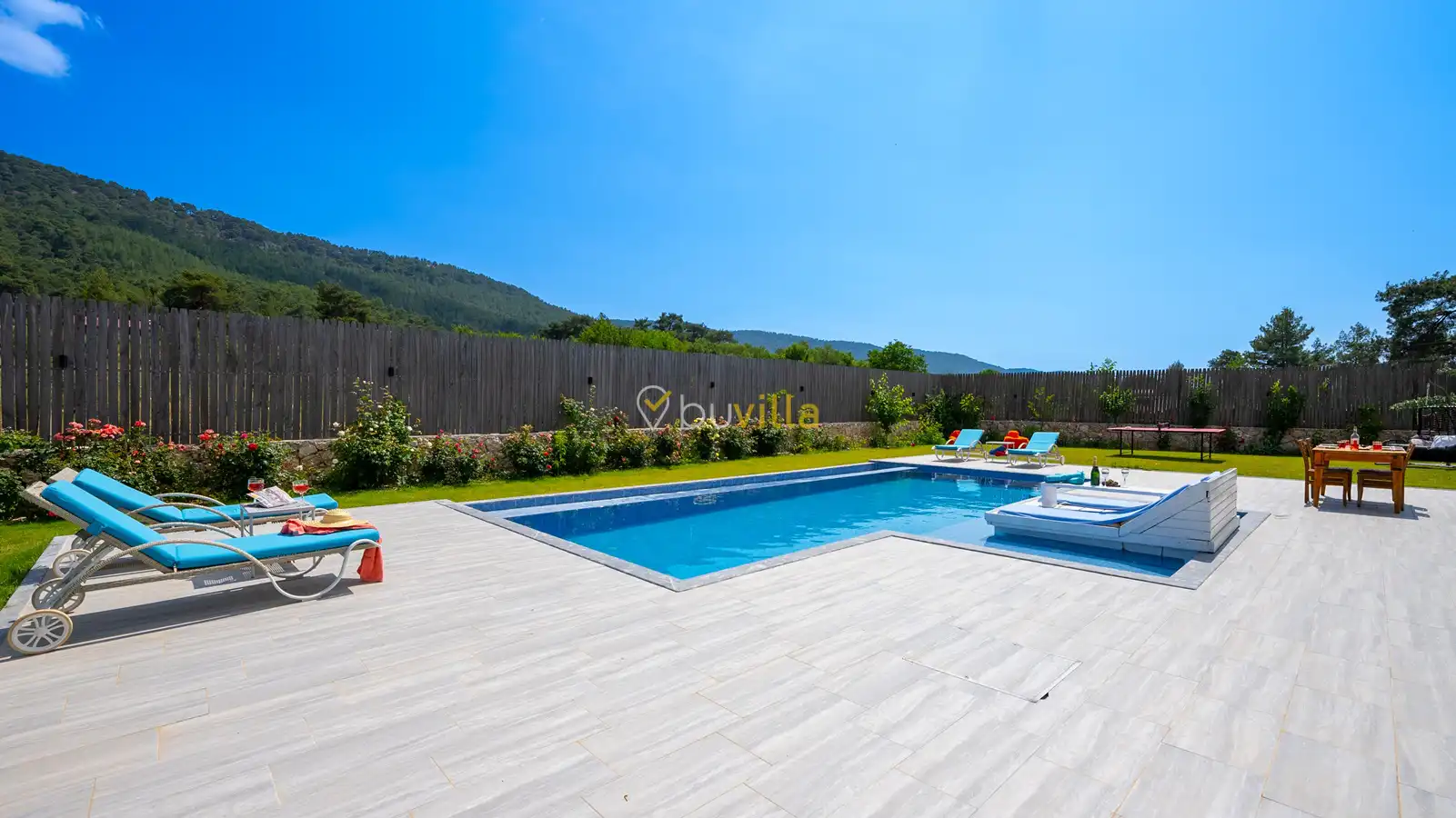 Villa Bora, Kalkan’ın Sarıbelen Mevkii’nde doğayla iç içe konumlanan, 2 yatak odalı ve 4 kişi konaklama kapasiteli bir tatil villasıdır. Geniş bahçesi, özel yüzme havuzu ve modern dizaynı ile misafirlerine konforlu bir konaklama deneyimi sunar.