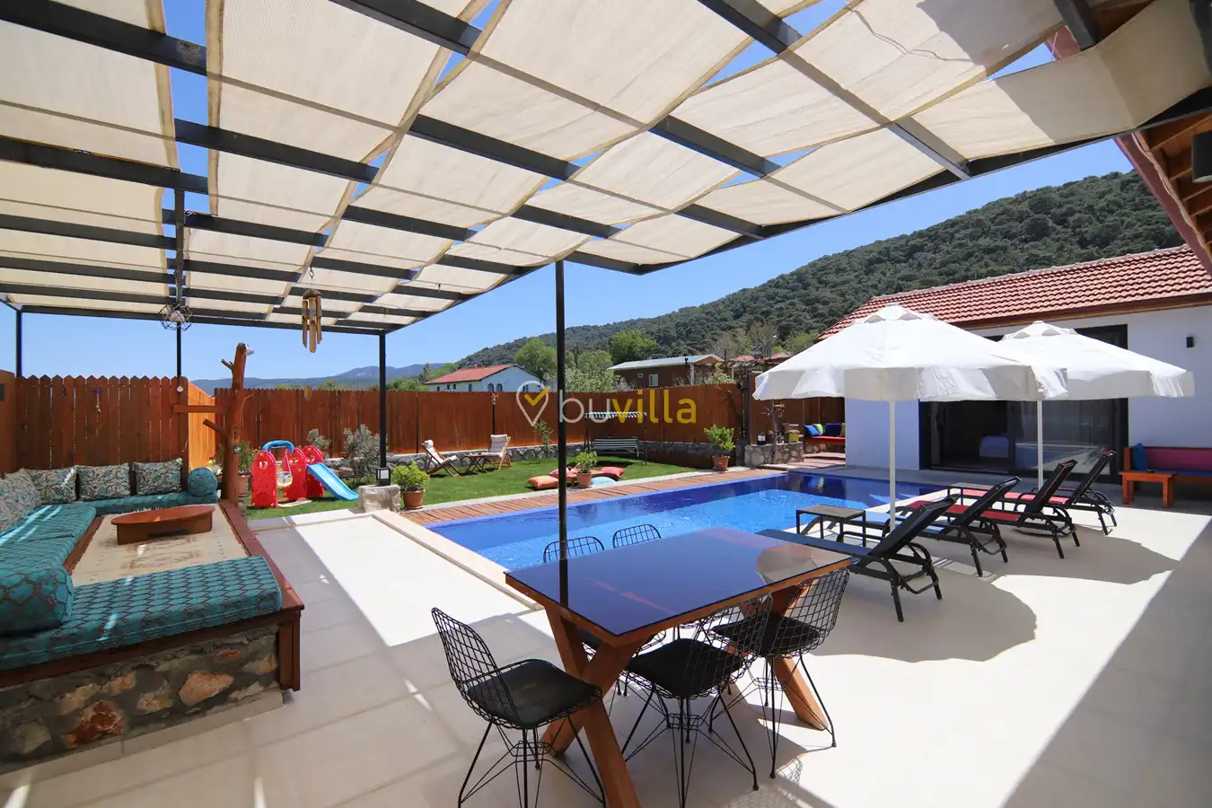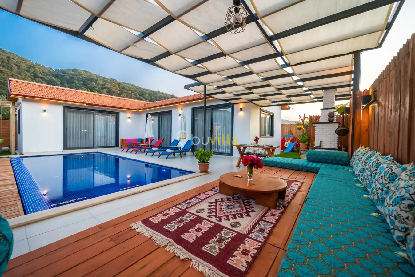 Villa Busem Sarıbelen, şehir gürültüsünden uzak, doğa ile iç içe bir konumda yer almaktadır. Kalkan’ın Sarıbelen bölgesinde bulunan villamız, modern mimarisi ve konforlu yapısıyla dikkat çekmektedir. Muhafazakâr çekirdek aileler ve balayı çiftleri için ideal olan Villa Busem Sarıbelen, huzurlu bir tatil deneyimi sunmaktadır. Tek katlı olarak tasarlanan villamızın yatak odalarından birinde jakuzi bulunmaktadır. Sakin ve keyifli bir tatil geçirmek isteyen misafirlerimiz, Villa Busem Sarıbelen’i gönül rahatlığıyla tercih edebilirler.
