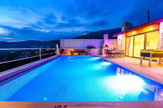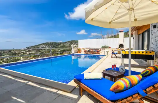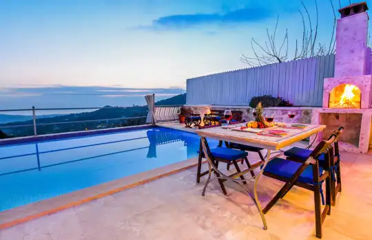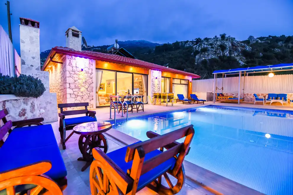 Kalkan Islamlar mevkisinde 1 yatak odali 2 kisi kapasitesindedir. Kiralik villamiz balayi çiftleri için özel dizayn edilmis muhtesem doga manzarasina sahiptir. Genis havuz terasinda keyifli vakit geçirebileceginiz villamizin etrafi korunakli muhafazakar villa seçeneklerimiz arasindadir. Kis aylari içinde tercih edebileceginiz villamizin kapali isitma havuzu bulunmaktadir. Doga içerisinde gözlerden uzak tatil firsati sunan kiralik villamiz misafirlerini agirlamayi beklemektedir.