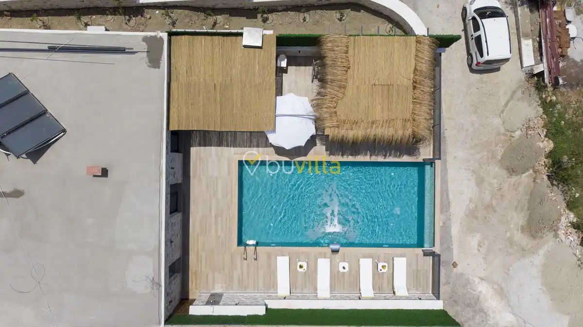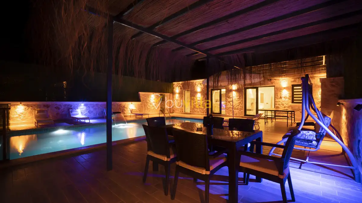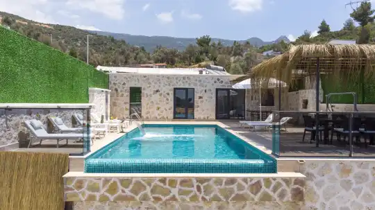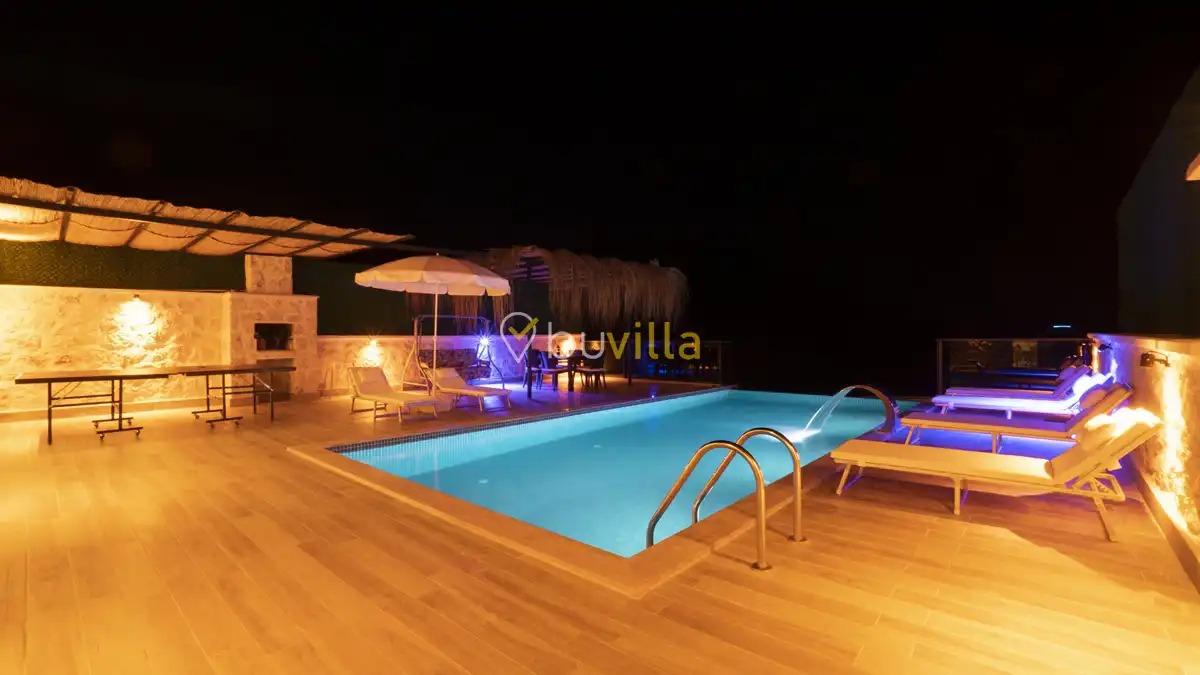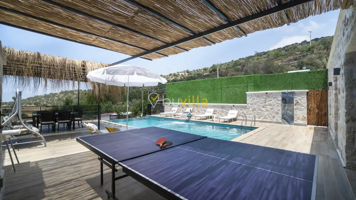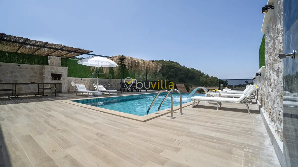 Modern ve konforlu şekilde dizayn edilen villamızda korunaklı yüzme havuzu bulunmakta olup, misafirlerine gözlerden uzak ve huzurlu bir tatil imkânı sunar. Doğa ile iç içe konumu sayesinde şehir kalabalığından uzak, sakin ve dinlendirici bir atmosfer sağlar.