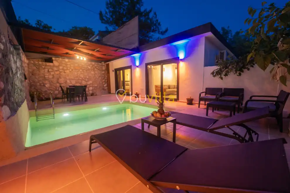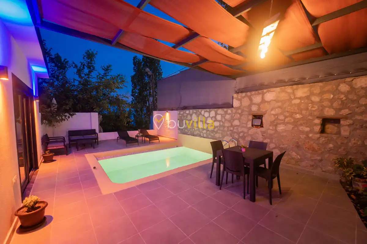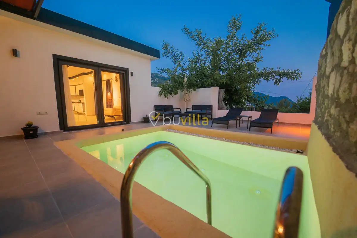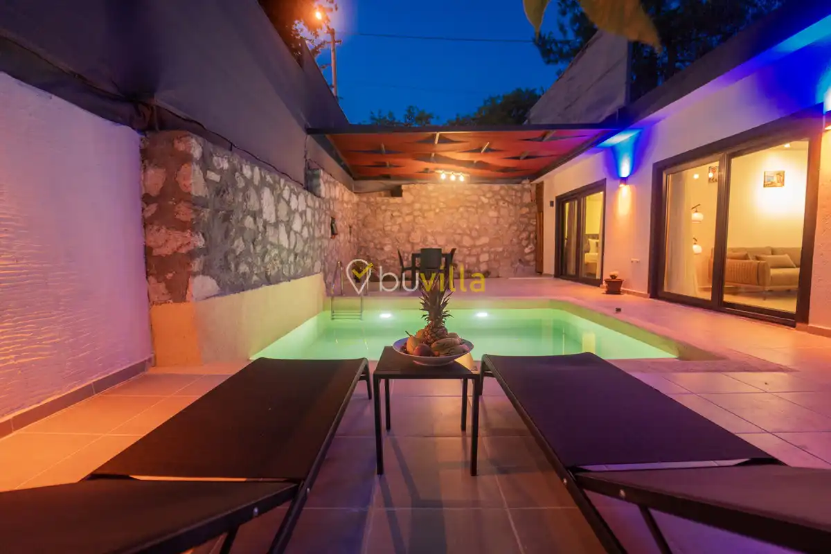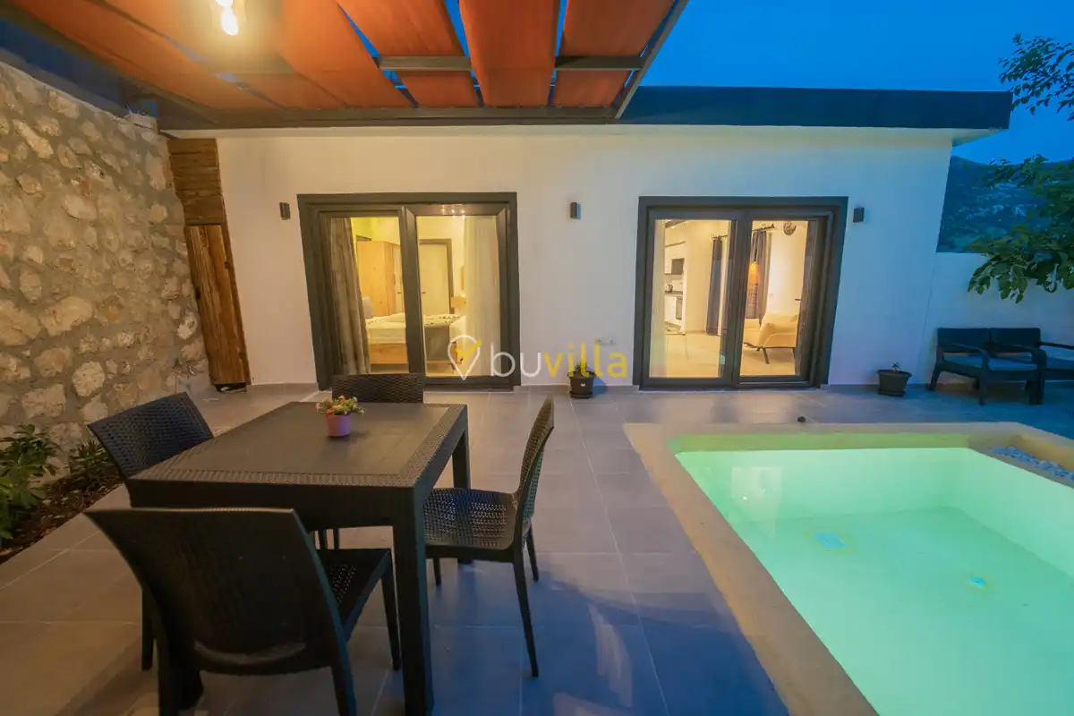 Villa Çardak, Kalkan’ın huzurlu bölgelerinden İslamlar mevkiinde konumlanan, 1 yatak odalı ve 2 kişilik konaklama kapasitesine sahip özel bir balayı villasıdır.Doğa içerisinde yer alan villamız, sessiz ve sakin bir ortamda, şehir kalabalığından uzak bir tatil geçirmek isteyen misafirler için ideal bir seçenek sunmaktadır. Havuz çevresi mahremiyete uygun şekilde tasarlandığı için muhafazakâr tatil anlayışına uygun bir konaklama imkânı sağlar.