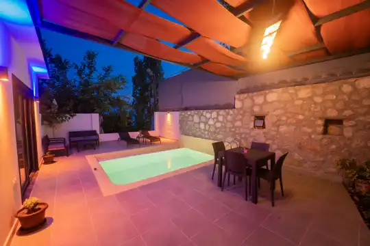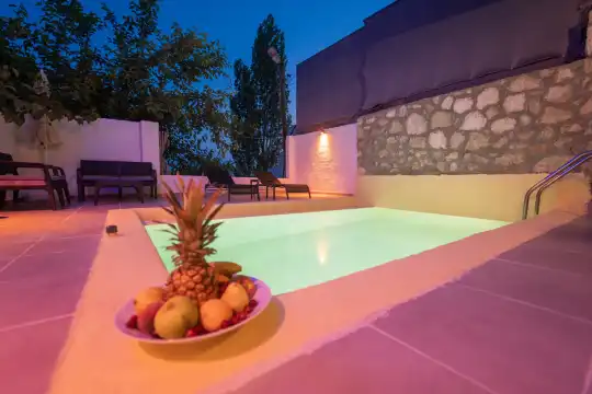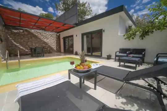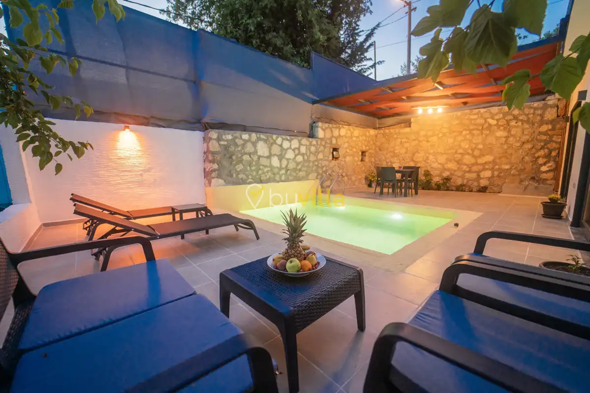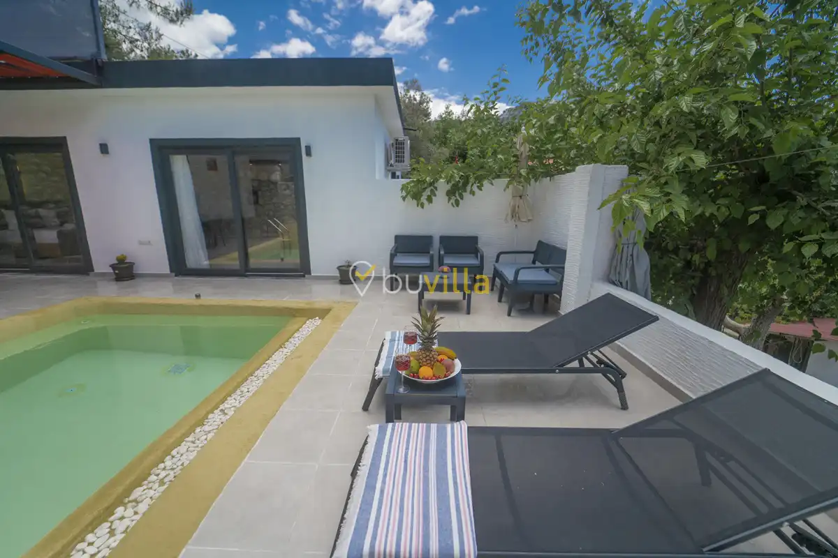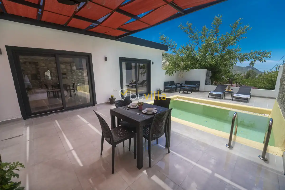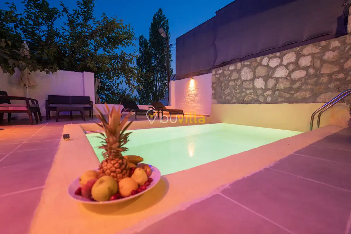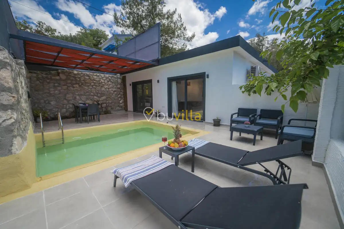 Villa Çardak, Kalkan’ın huzurlu bölgelerinden İslamlar mevkiinde konumlanan, 1 yatak odalı ve 2 kişilik konaklama kapasitesine sahip özel bir balayı villasıdır.Doğa içerisinde yer alan villamız, sessiz ve sakin bir ortamda, şehir kalabalığından uzak bir tatil geçirmek isteyen misafirler için ideal bir seçenek sunmaktadır. Havuz çevresi mahremiyete uygun şekilde tasarlandığı için muhafazakâr tatil anlayışına uygun bir konaklama imkânı sağlar.